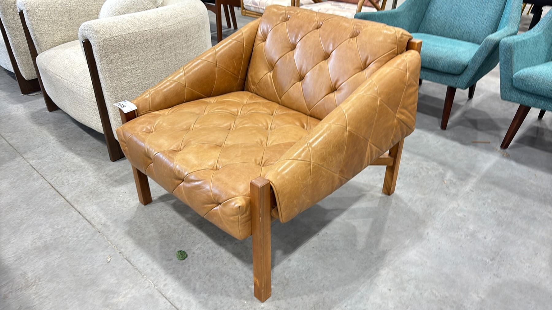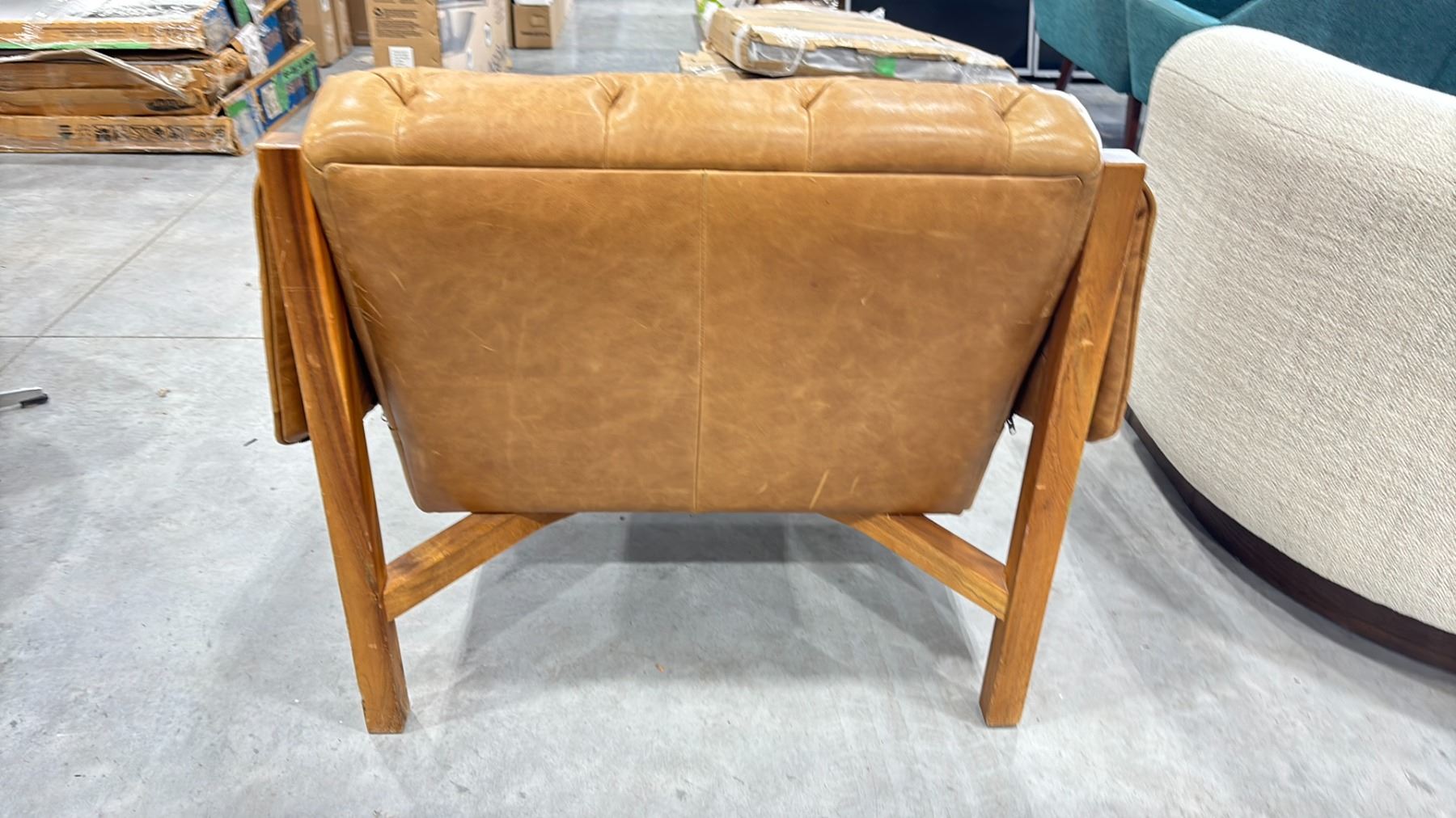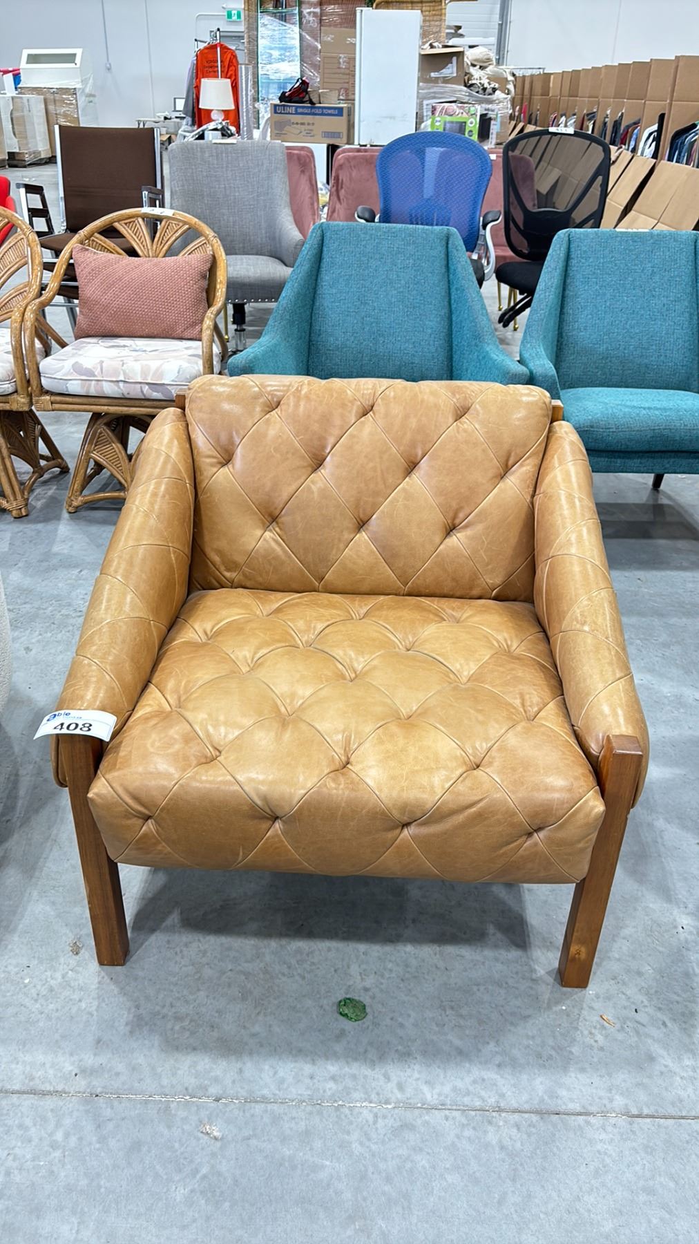 BROWN LEATHER VINTAGE LOOK ARMCHAIR