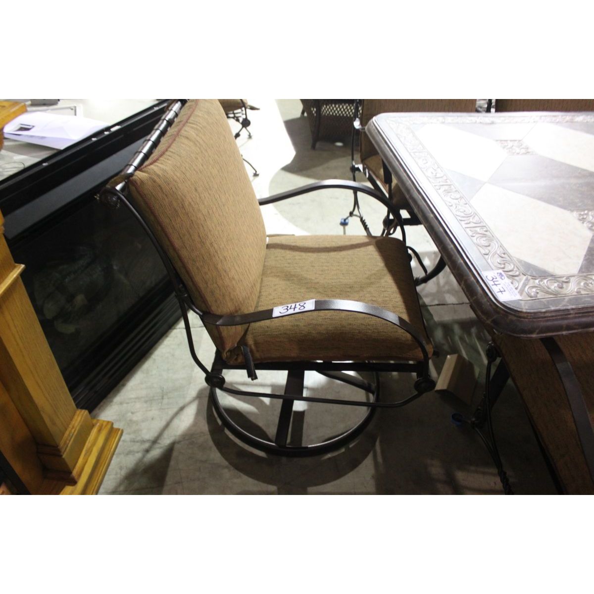 BROWN METAL CURVED ARM PATIO CHAIR WITH CUSHION