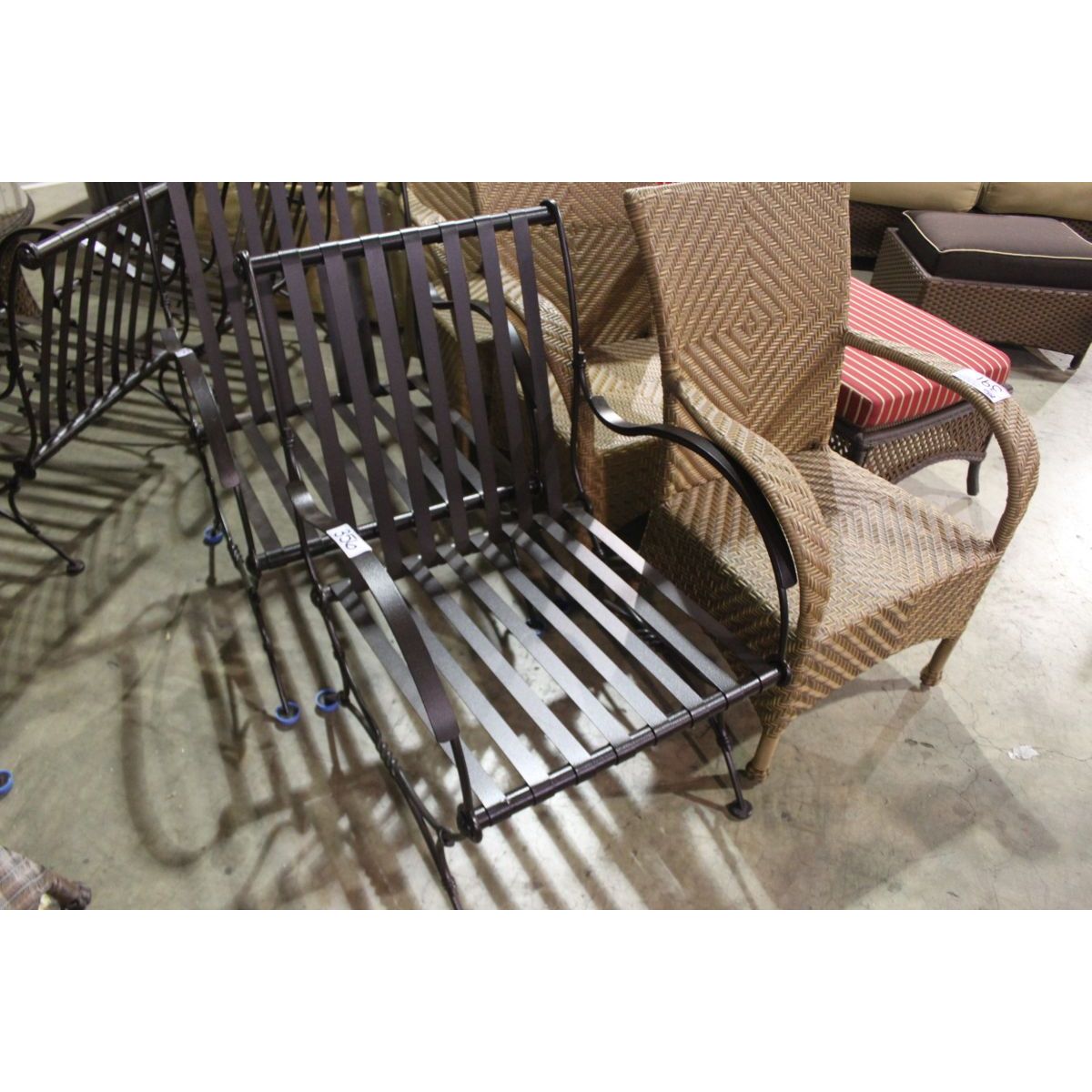 BROWN METAL CURVED ARM PATIO CHAIR