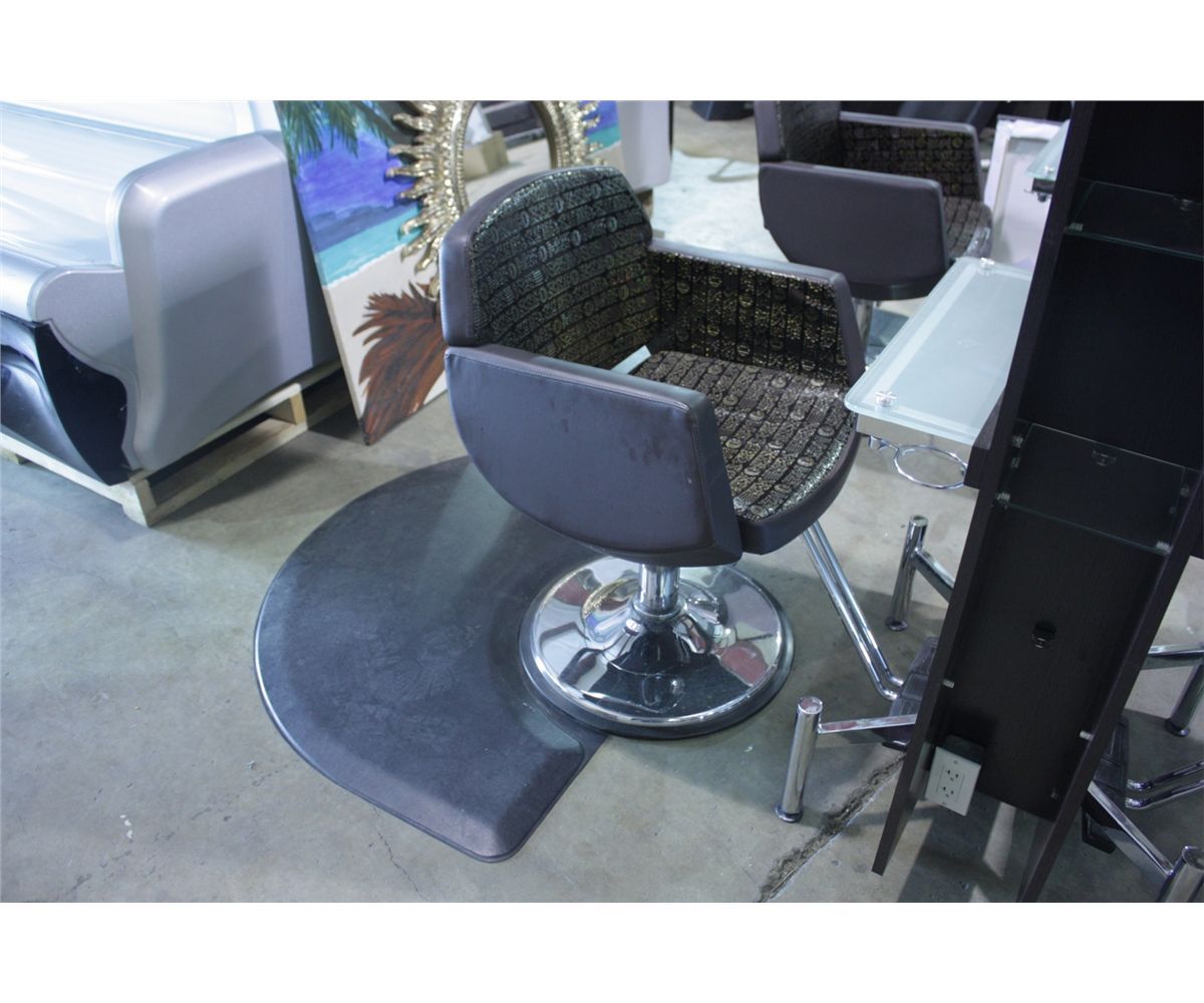 BROWN PATTERENED GAS LIFT SALON CHAIR/ STRESS MAT