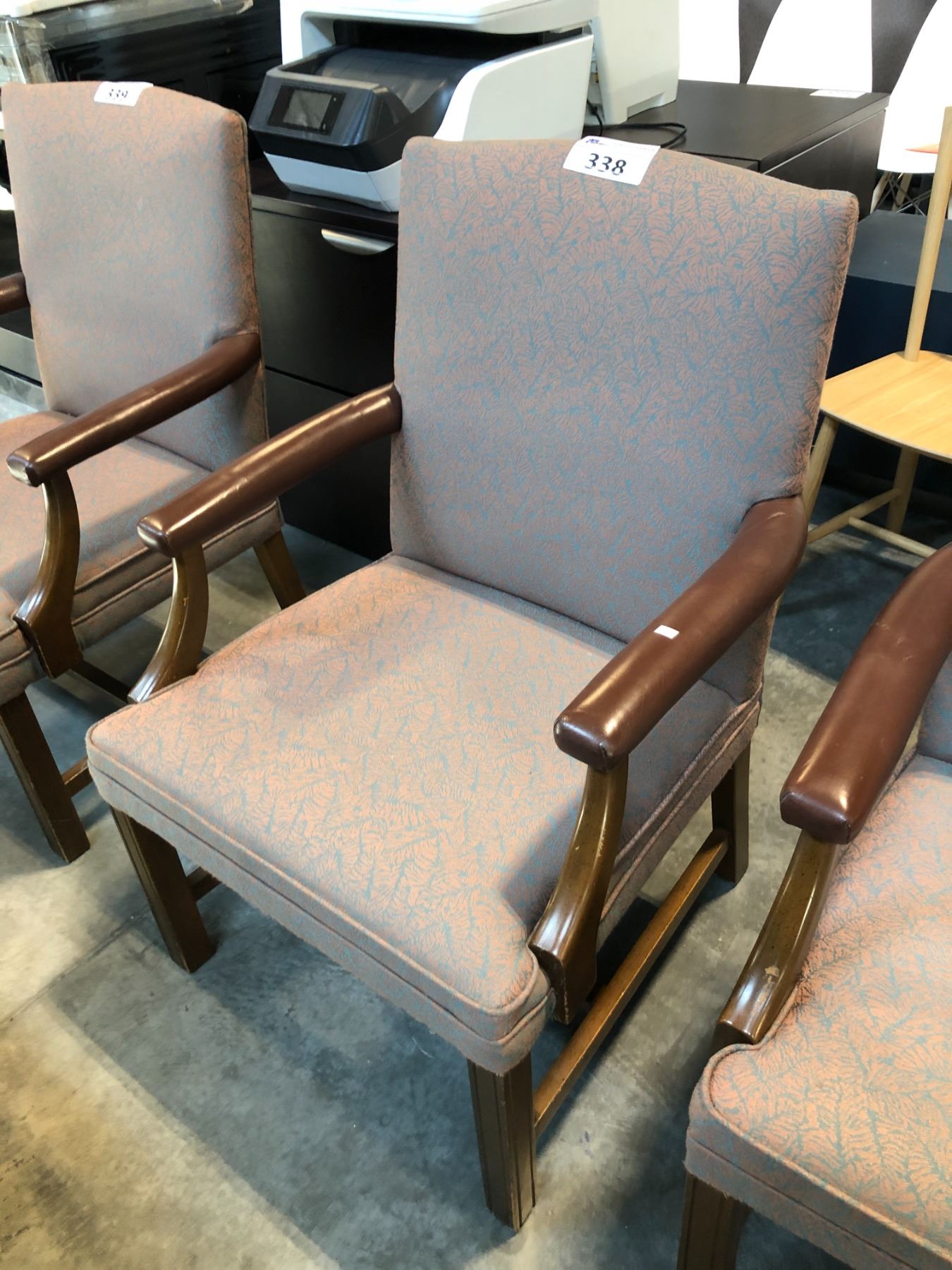 BROWN PATTERNED TRADITIONAL ARM CHAIR