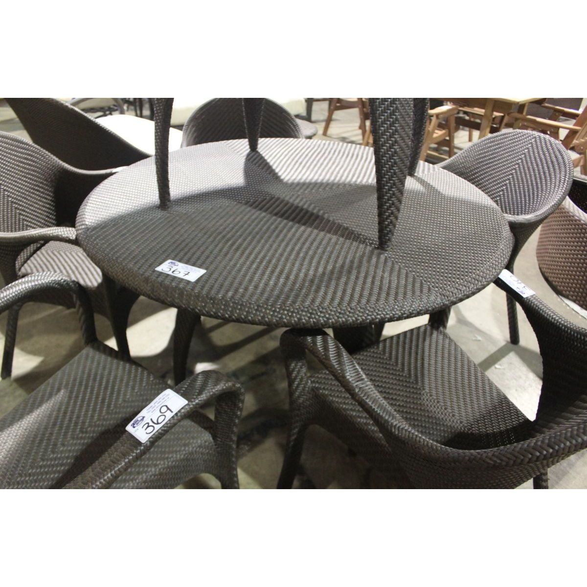BROWN RATAN CIRCULAR PATIO TABLE