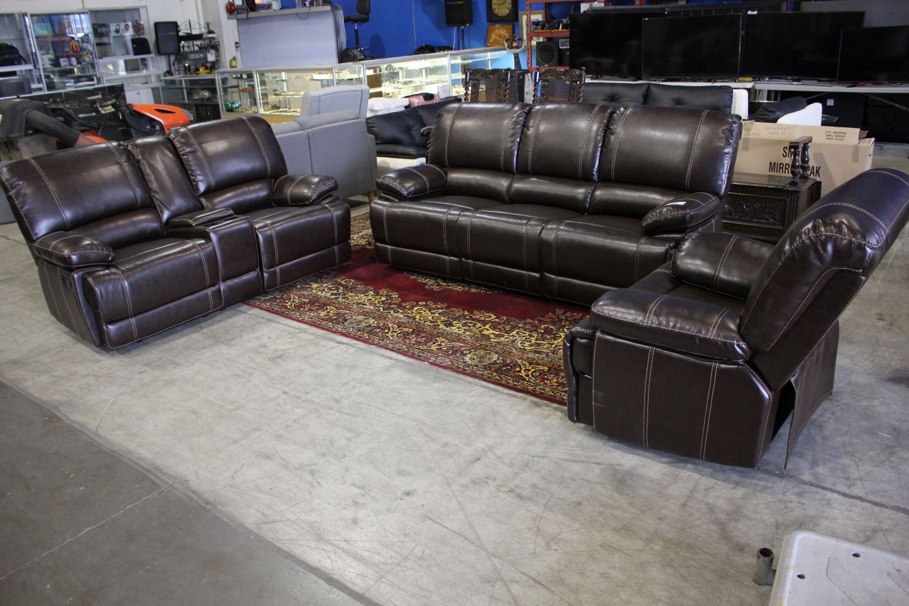BROWN RECLINING SOFA SET WITH SOFA, LOVESEAT AND ARMCHAIR!