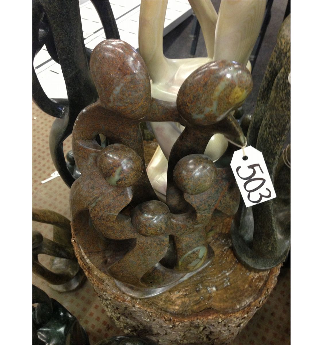 BROWN SERPENTINE FAMILY OF 5 HAND CARVED 19" TALL
