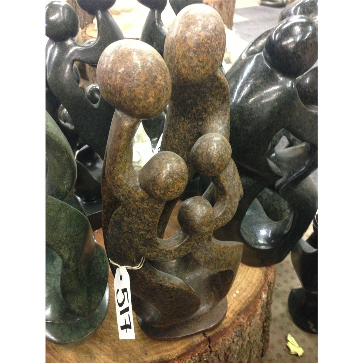 BROWN SERPENTINE, HAND CARVED FAMILY OF 5, 21" TALL