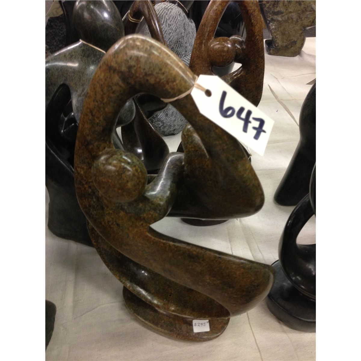 BROWN SERPENTINE STONE, HAND CARVED ABSTRACT 16" TALL