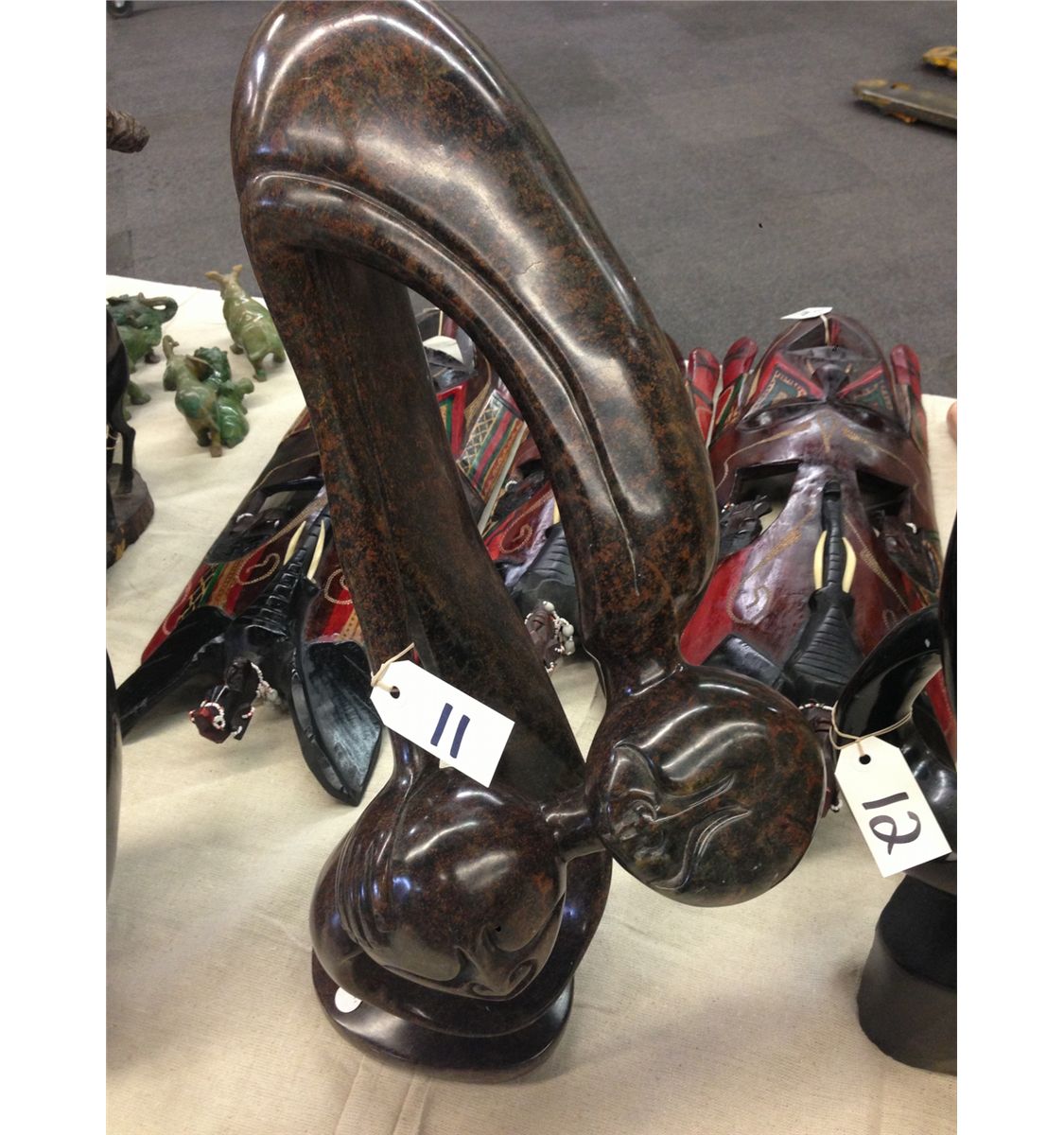 BROWN SERPENTINE STONE HAND CARVED STATUE, FROM ZIMBABWE. 23" TALL