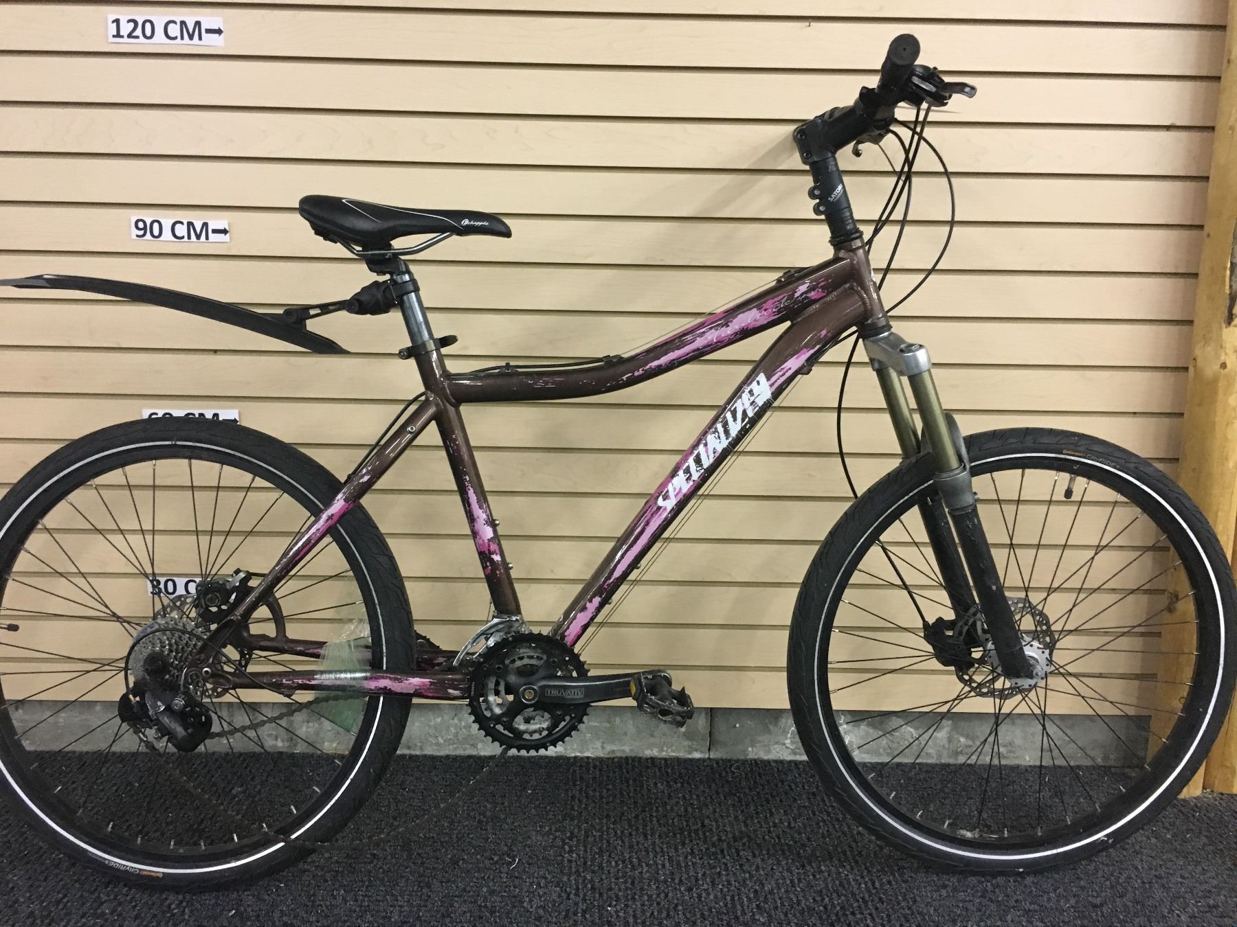 BROWN SPECIALIZED HARDROCK SPORT FRONT SUSPENSION MOUNTAIN BIKE WITH FRONT AND REAR DISK BRAKES