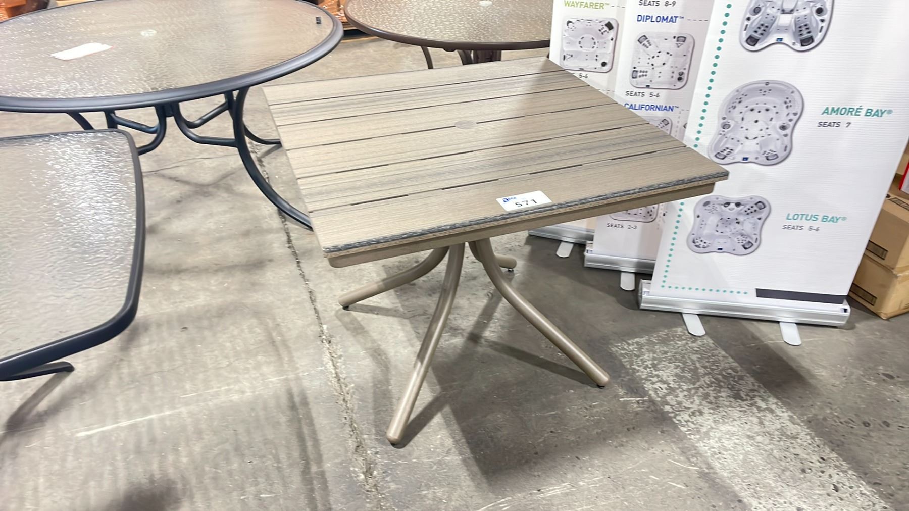 BROWN SQUARE CAST ALUMINUM COMPOSITE TOP PATIO TABLE 36" X 35".5 X 29"H