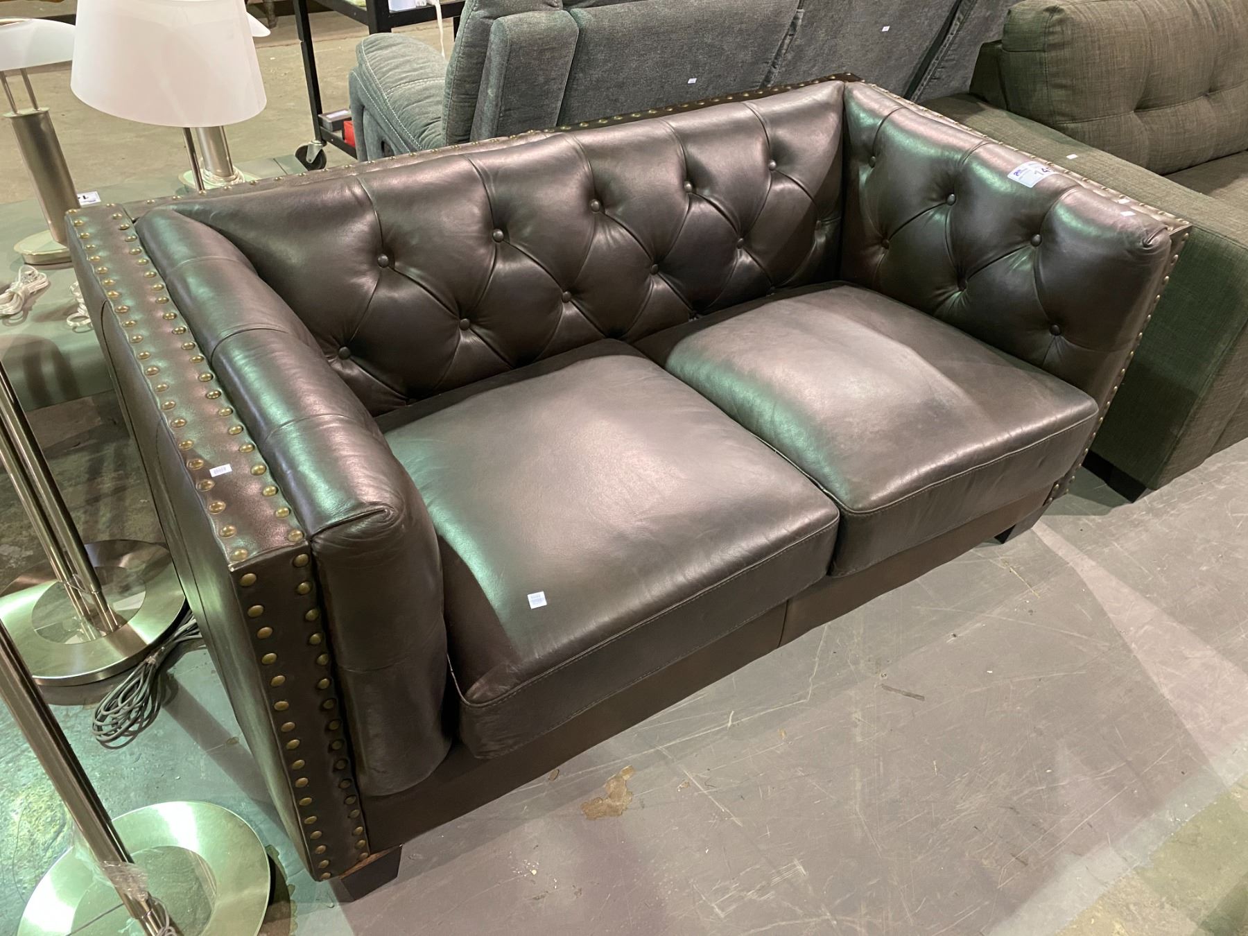 BROWN STUDDED/BUTTON BACK FAUX LEATHER LOVE SEAT