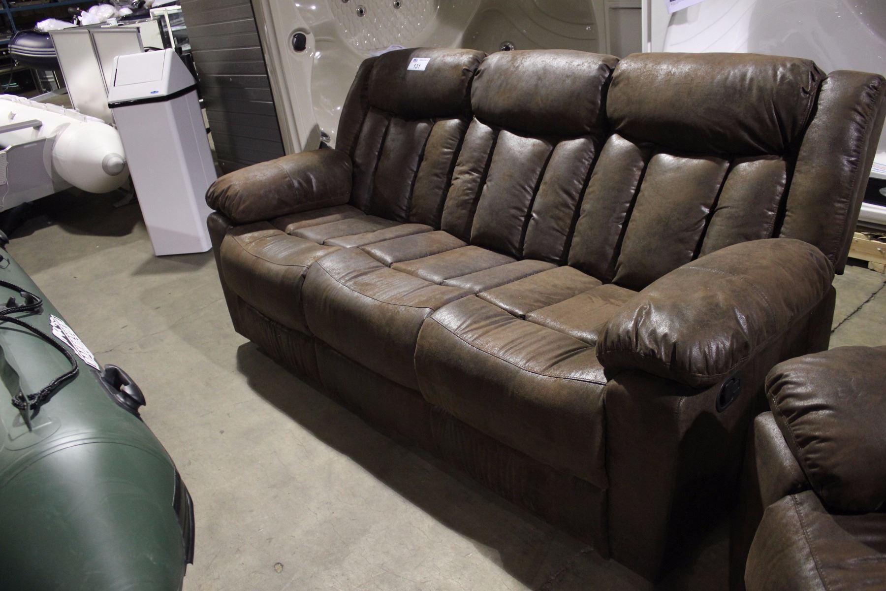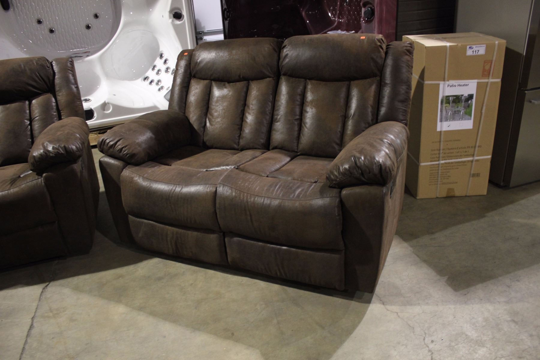 BROWN SUEDE RECLINING 3 PIECE COUCH, LOVE SEAT AND CHAIR SET