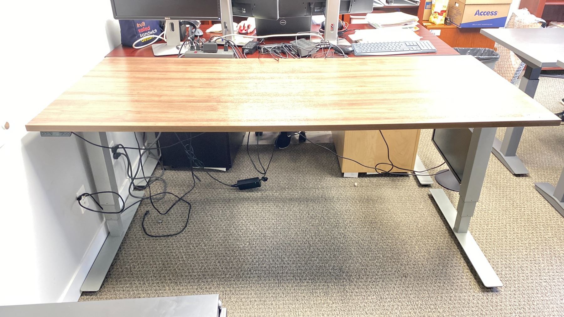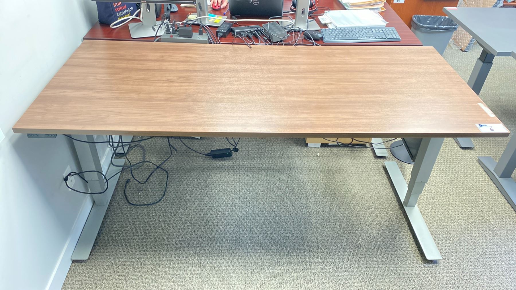 BROWN WITH GREY BASE ELECTRIC SIT TO STAND DESK 72 X 30"