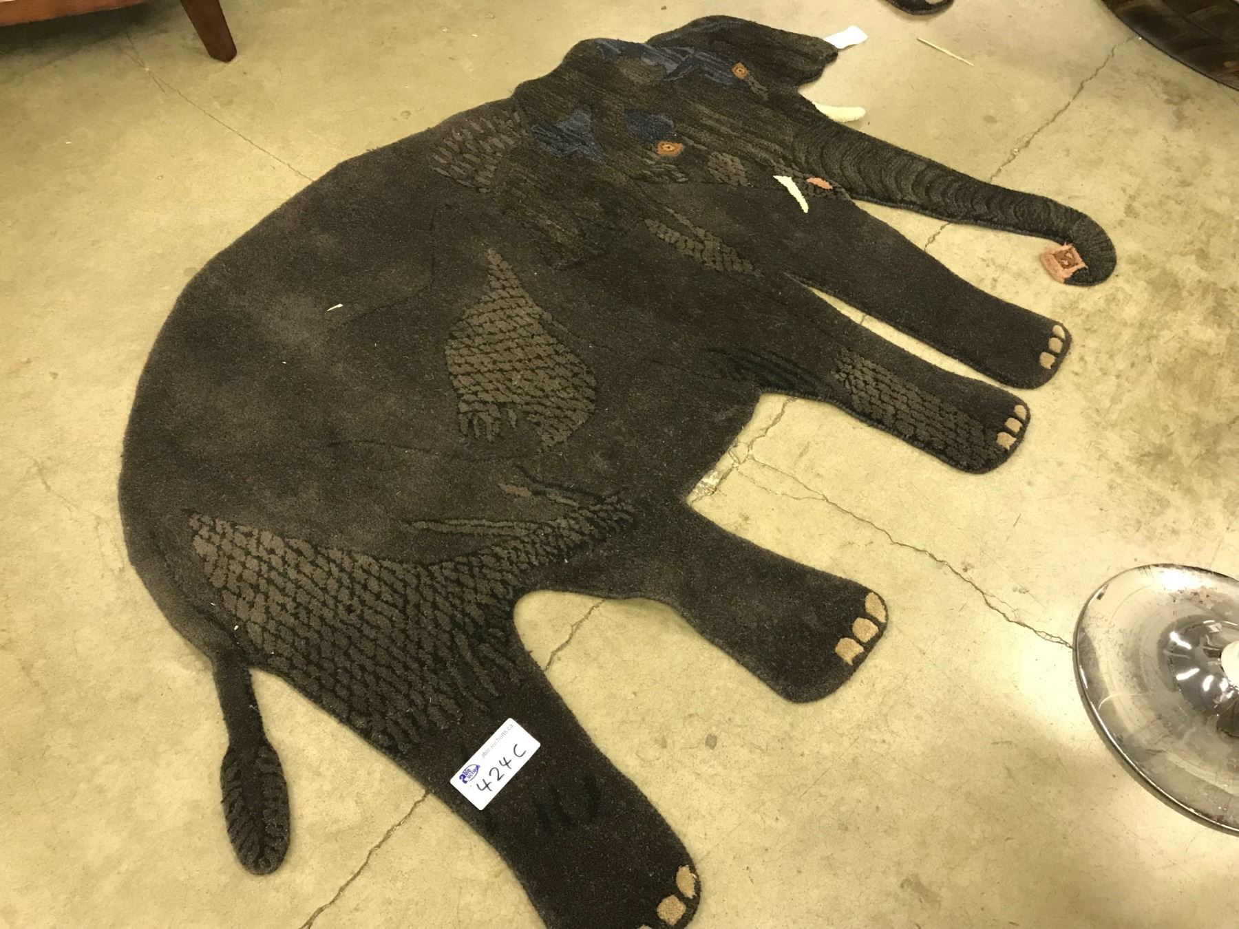 BROWN WOOL ELEPHANT AREA RUG 6' X 4' GALLERY PRICE $1280