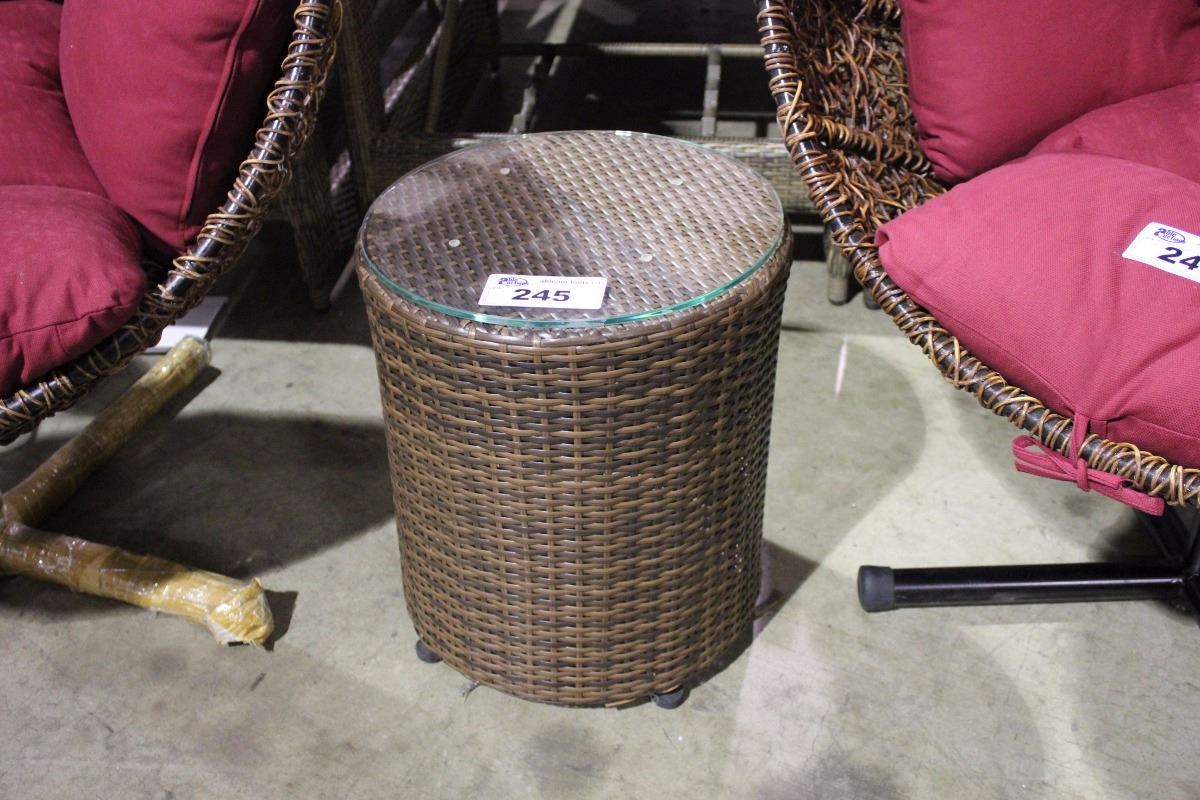 BROWN WOVEN GLASS TOP OUTDOOR PATIO END TABLE