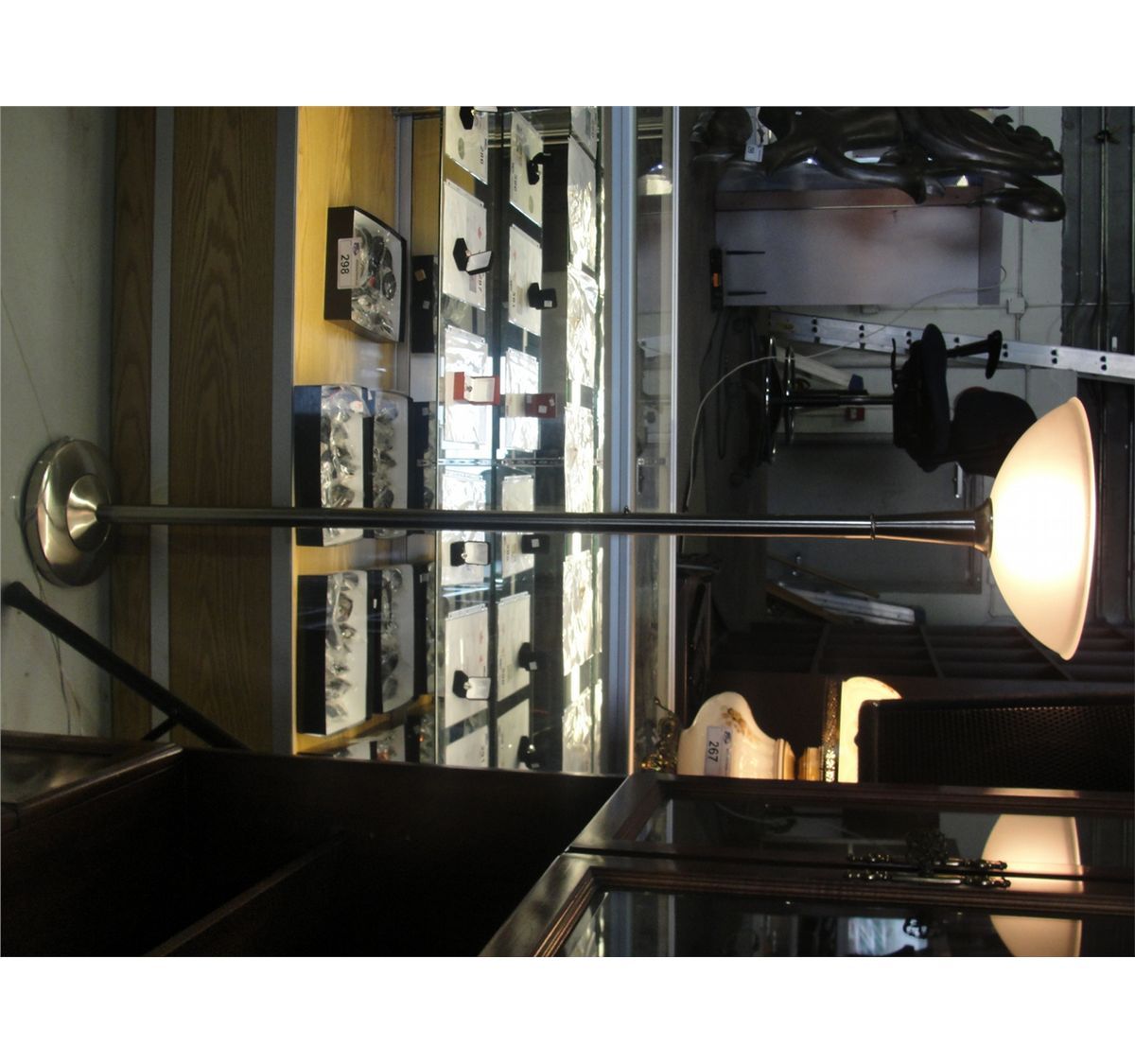 BRUSHED SILVER FINISH FLOOR LAMP WITH FROSTED WHITE GLASS SHADE