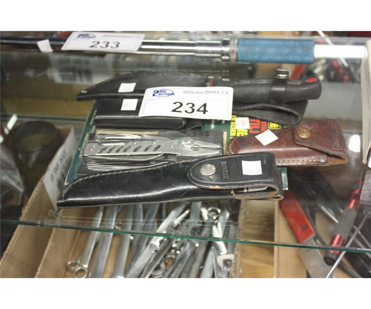 BUCK KNIFE, 2 HUNTING KNIVES AND 2 MULTI TOOLS