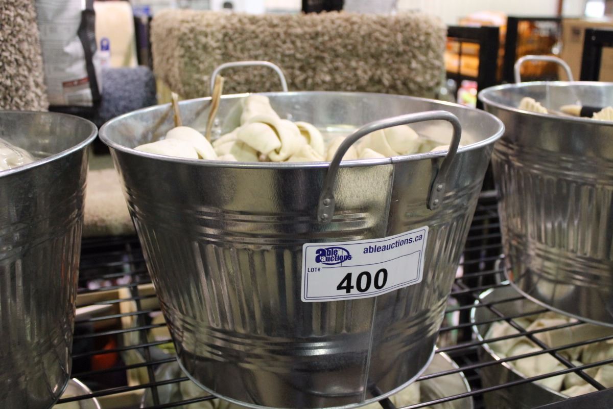 BUCKET OF ASSORTED RAW HIDE DOG CHEWS/BONES