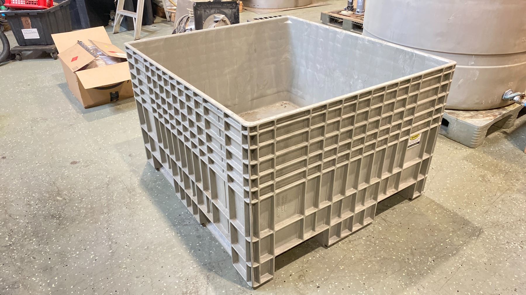 BUCKHORN MADE IN USA GREY INDUSTRIAL HARD PLASTIC PALLET BIN 4' X 44" X 24" INTERNAL 29 1/2" EXTERNAL