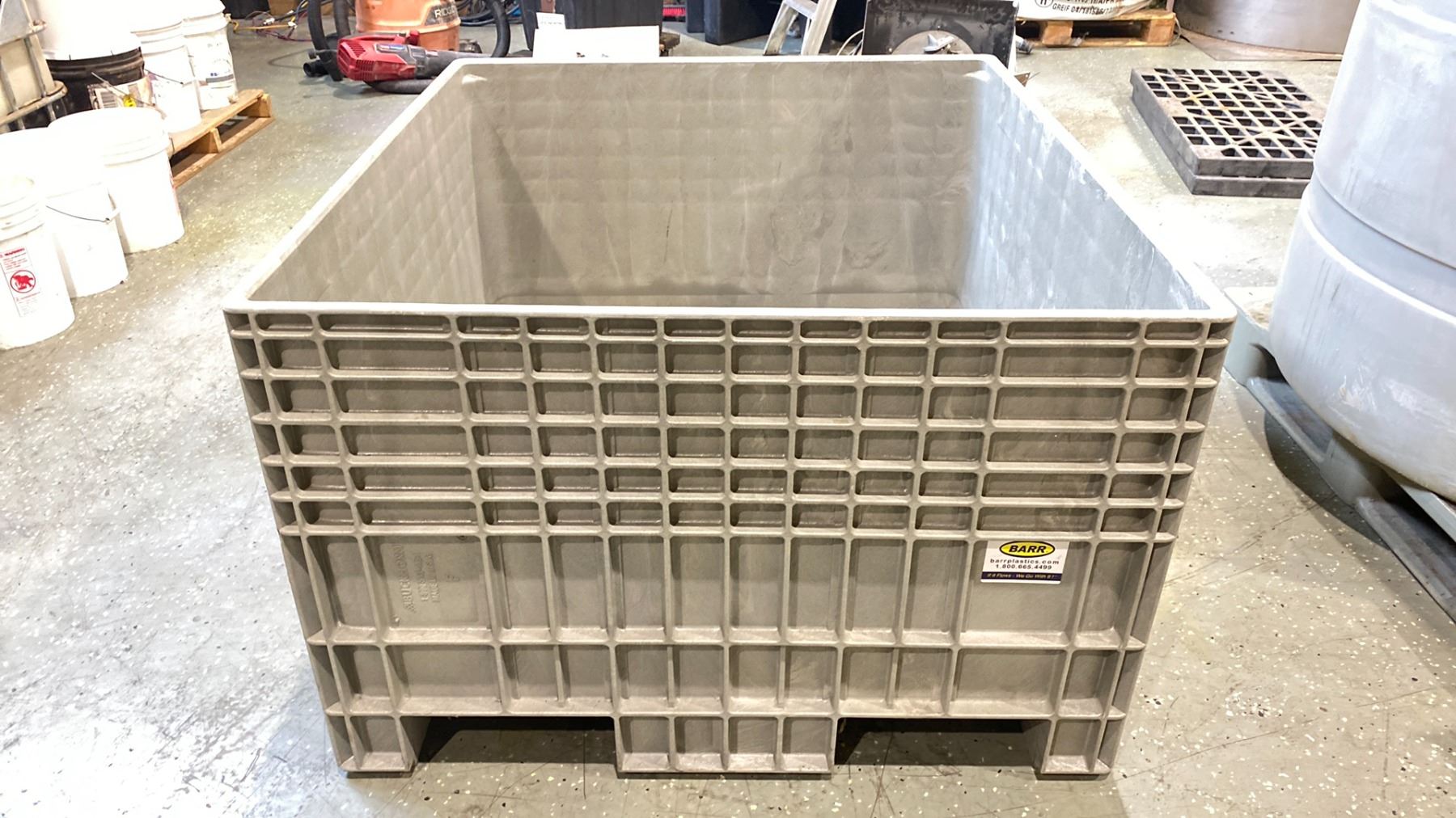 BUCKHORN MADE IN USA GREY INDUSTRIAL HARD PLASTIC PALLET BIN 4' X 44" X 24" INTERNAL 29 1/2"