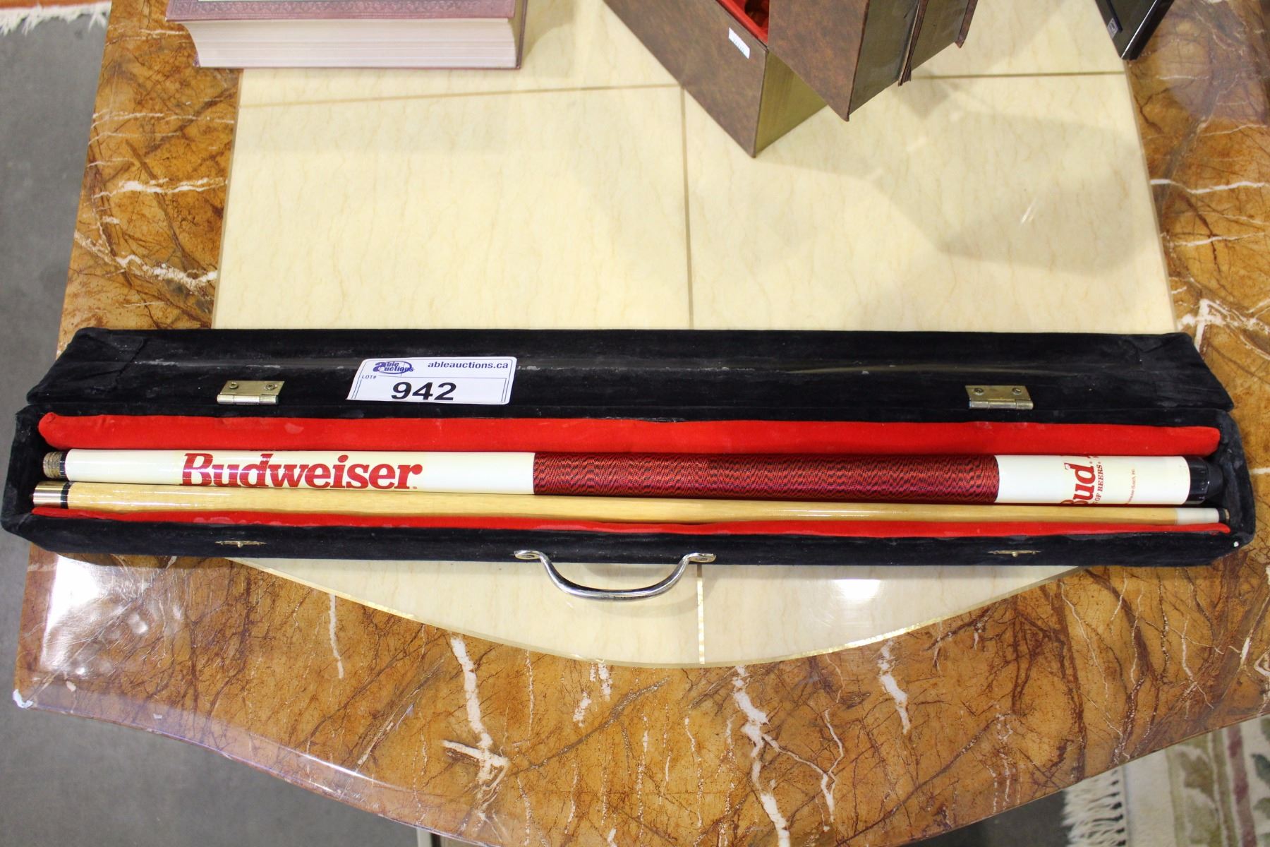 BUDWEISER 2 PIECE POOL CUE IN CASE