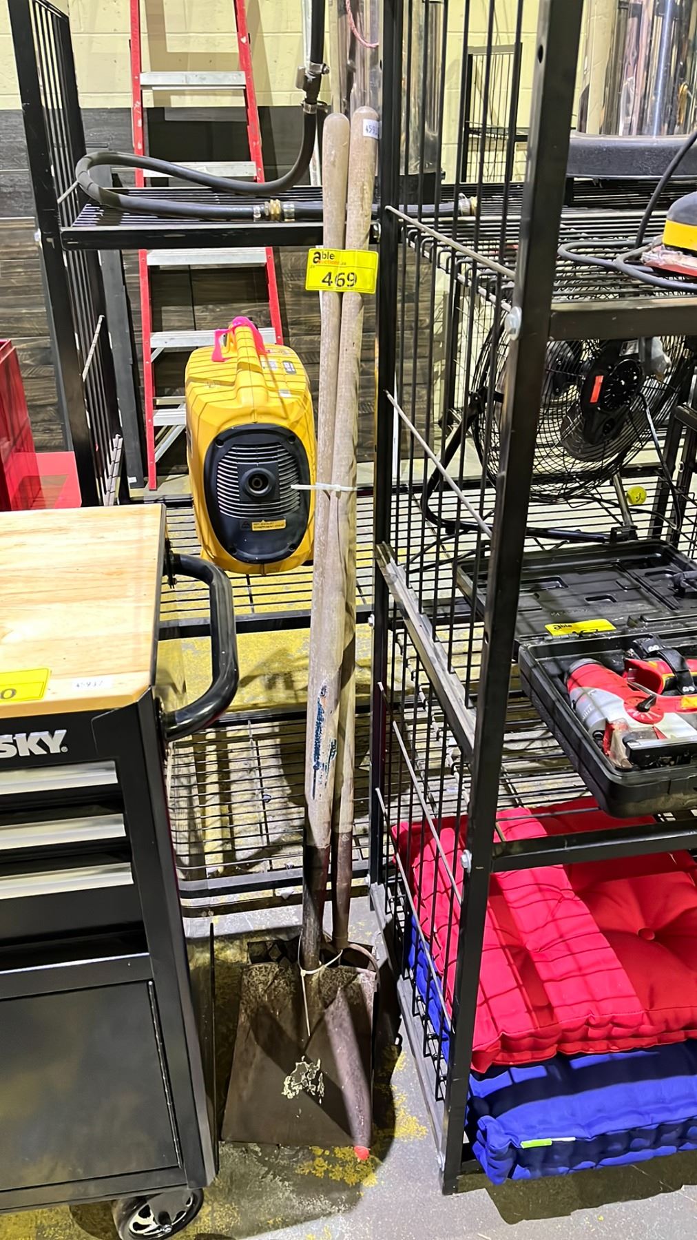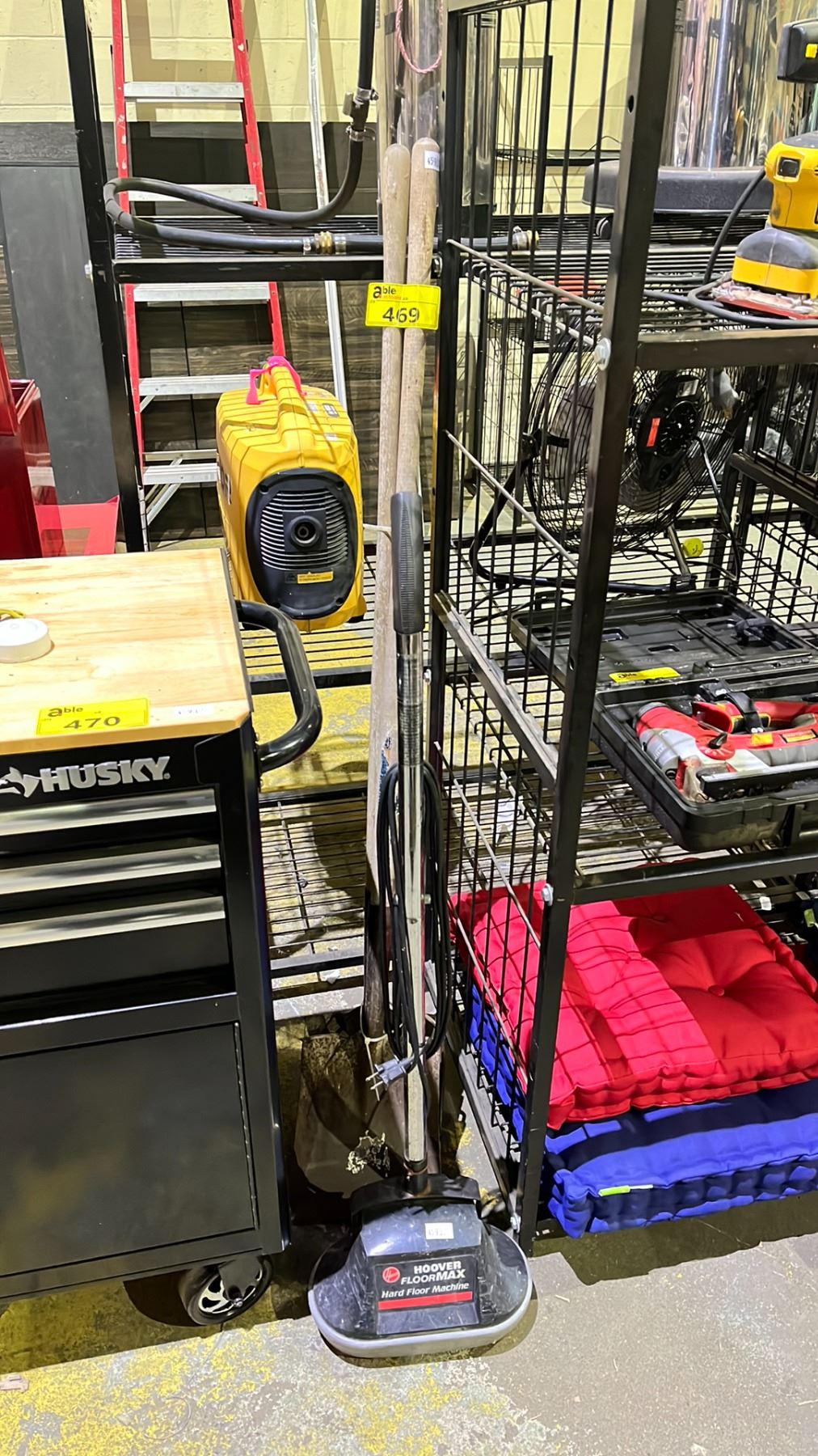 BUNDLE OF SHOVELS & HOOVER FLOORMAX HARD FLOOR MACHINE