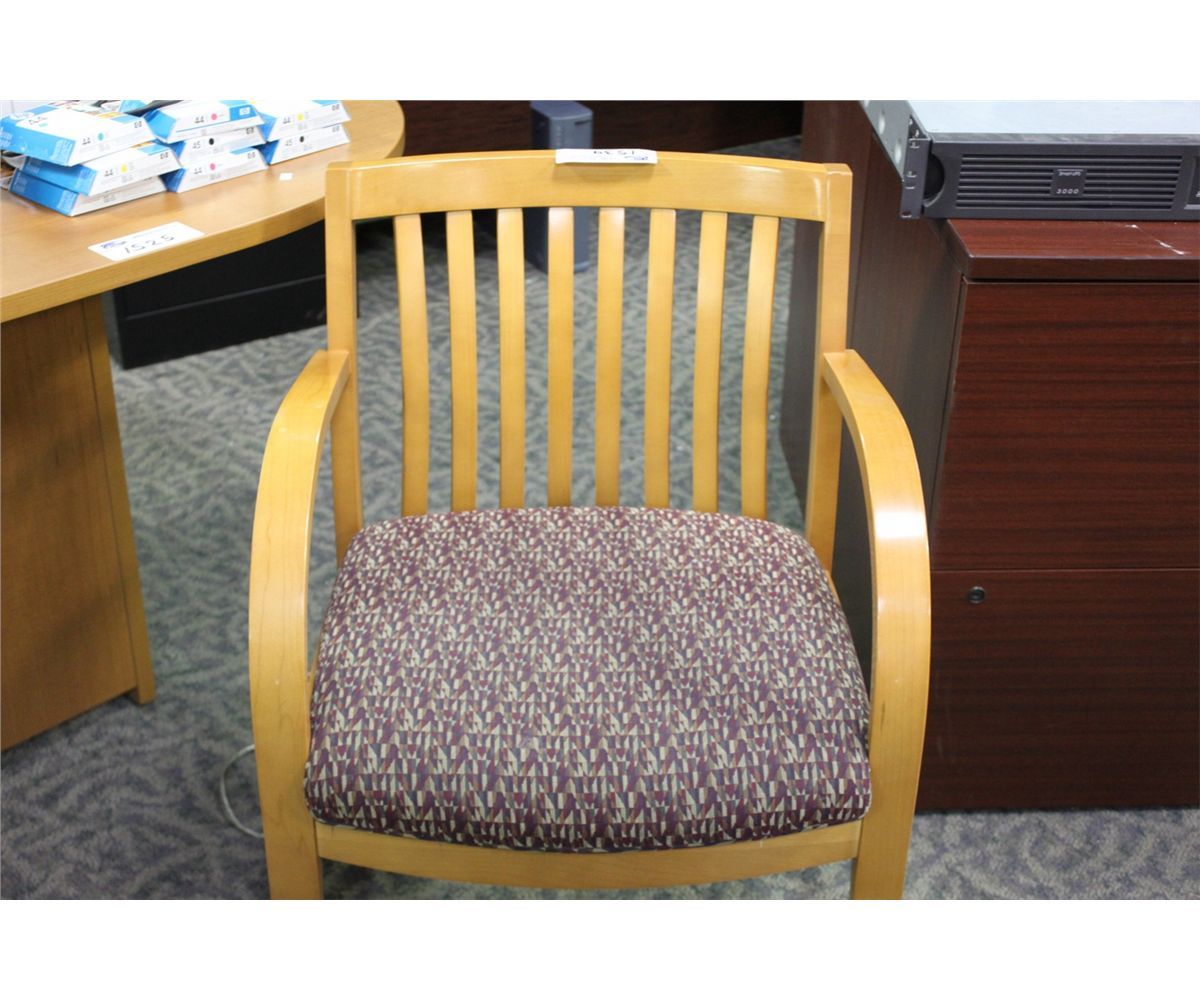 BURGANDY PATTERN MAPLE FRAME CLIENT CHAIR
