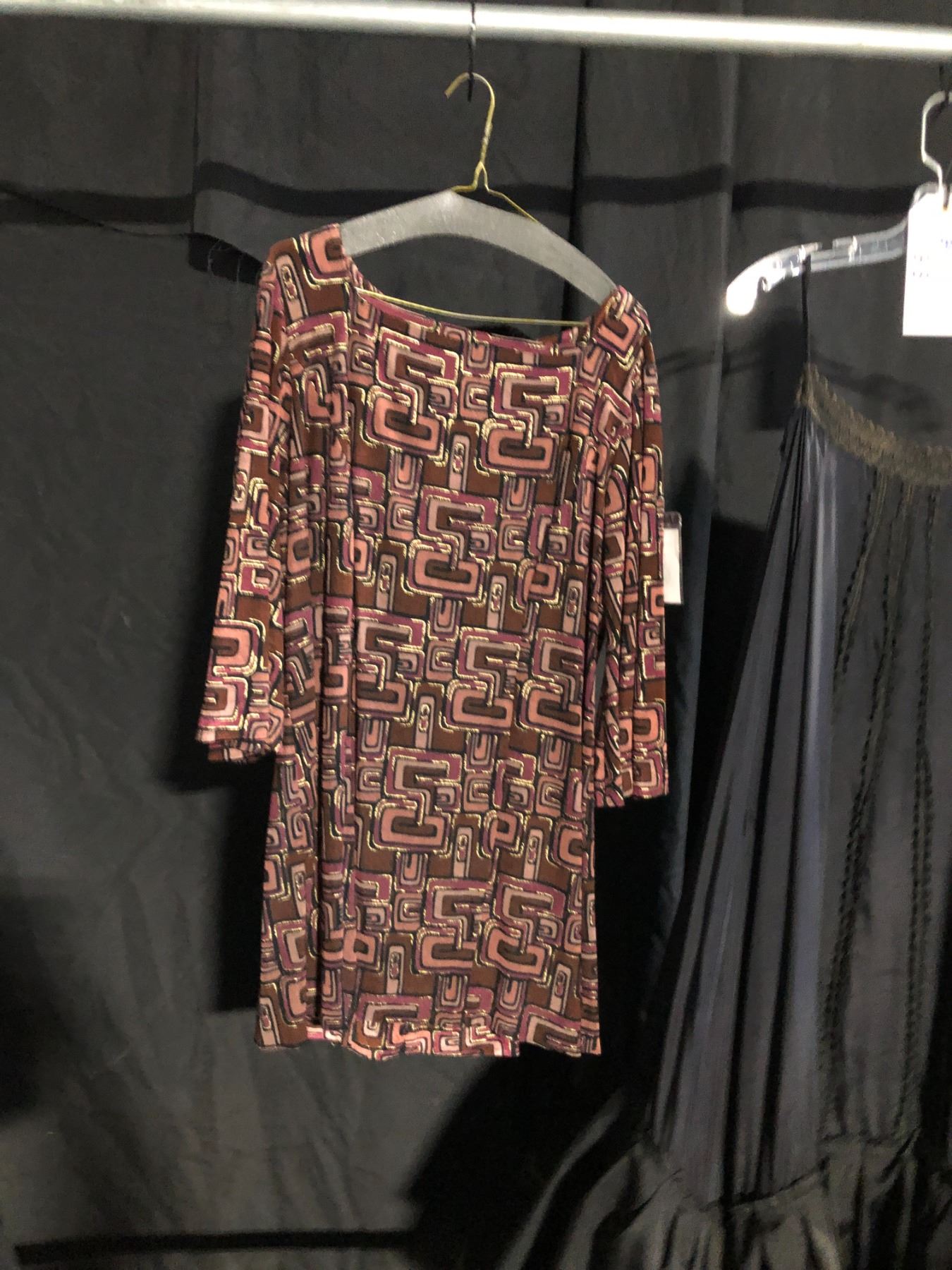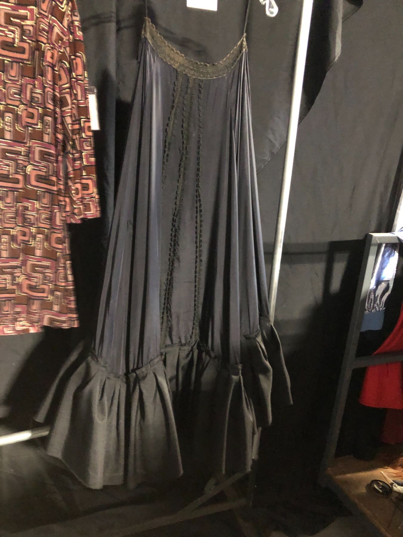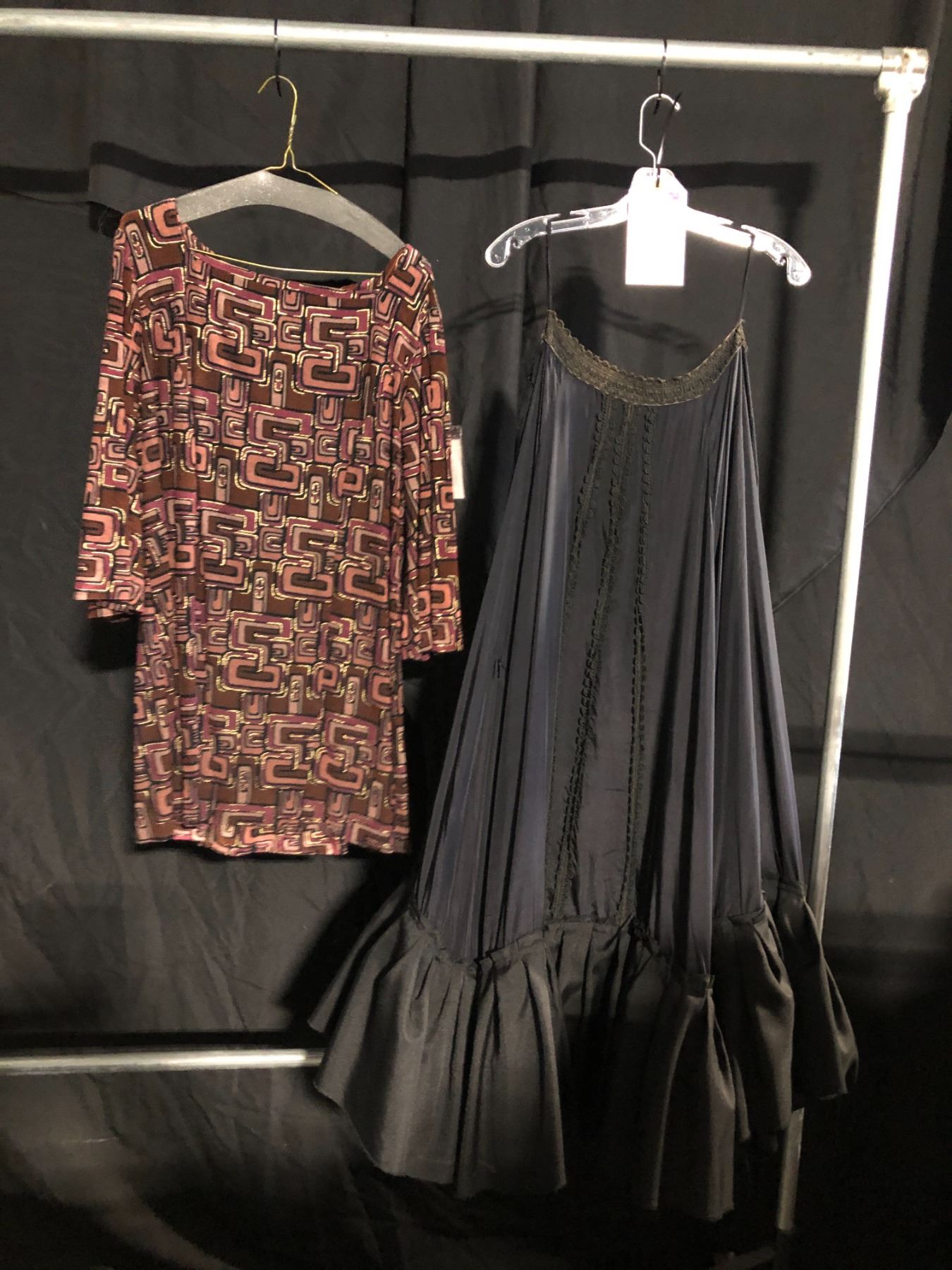 BURGUNDY 70'S STYLE DRESS AND BLACK DRESS, DAILY RENTAL $75.00