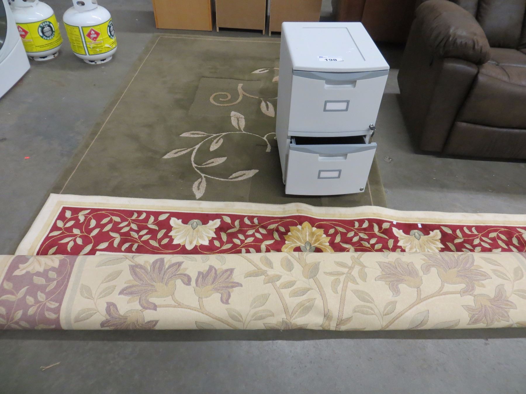 BURGUNDY FLORAL DESIGN APPROX 8X10' AREA RUG/FILING CABINET/DAMAGED AREA RUG