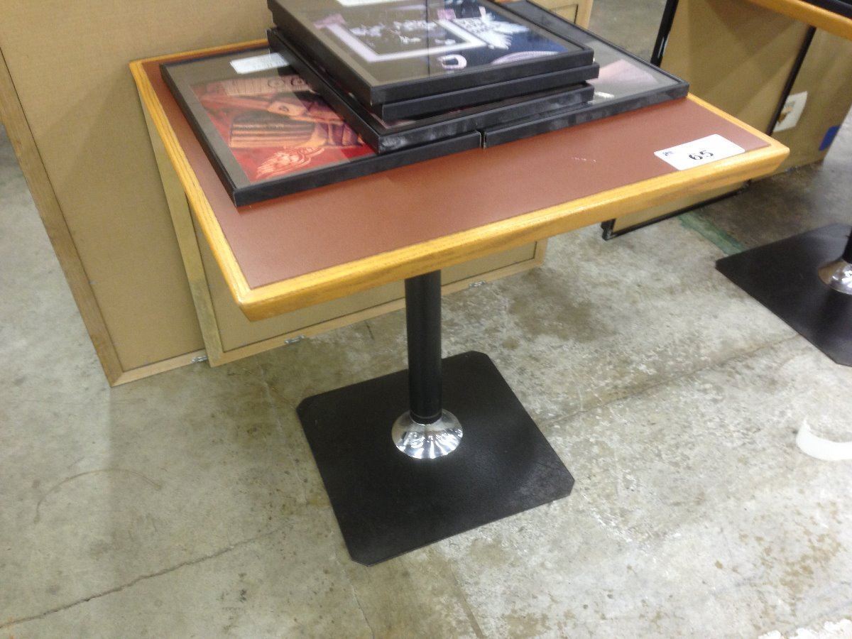 BURGUNDY INLAID OAK FRAMED 28 X28  BISTRO TABLE