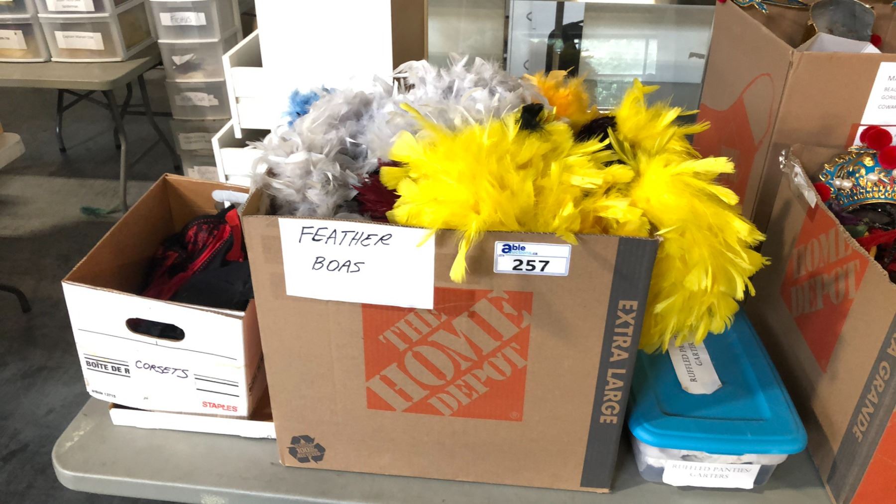 BURLESQUE ACCESSORIES INCLUDING BUSTIERS/CORSETS, GARTERS, RUFFLED PANTIES AND FEATHER BOAS