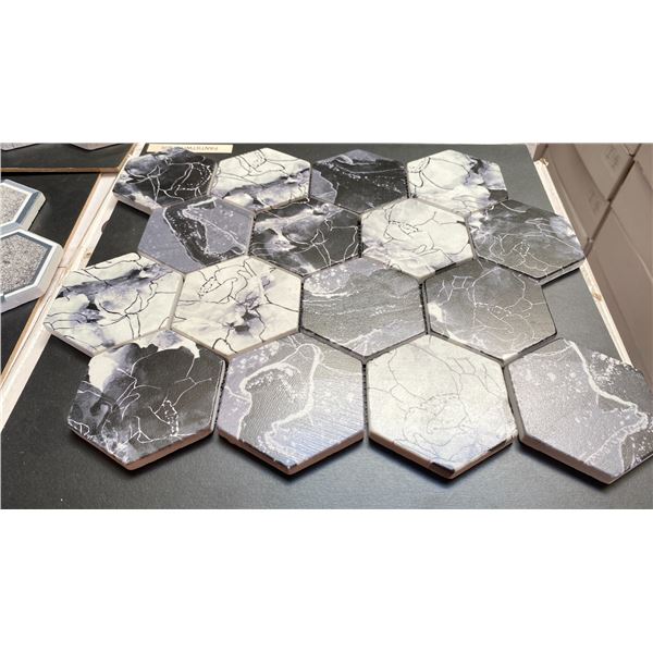 3 BOXES OF MARBLE MOSAIC HEXAGON TILE IN FANTSTBLK22 11 X 1SQ.FT. SHEETS PER BOX APPROX 33SQ.FT.