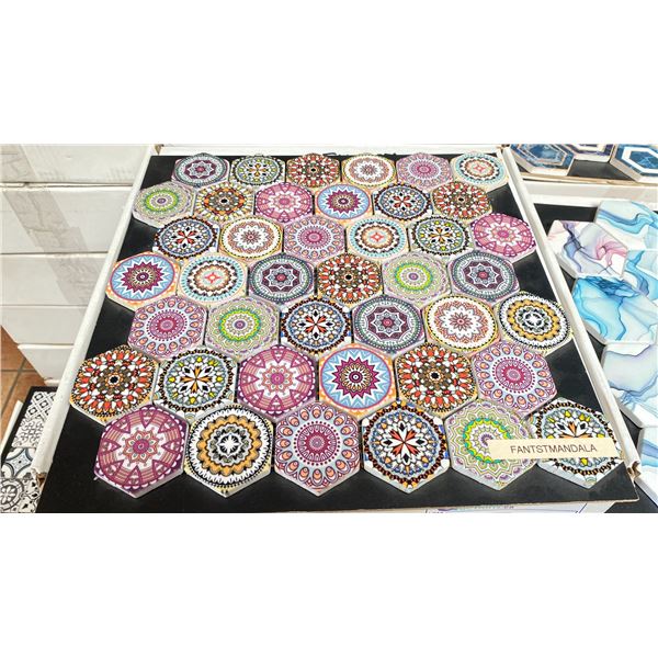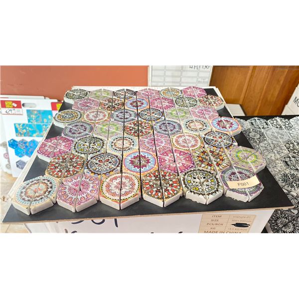 8 BOXES OF MARBLE MOSAIC HEXAGON TILE IN FANTSTAIRY 11 X 1SQ.FT. SHEETS PER BOX APPROX 88SQ.FT. TOTAL