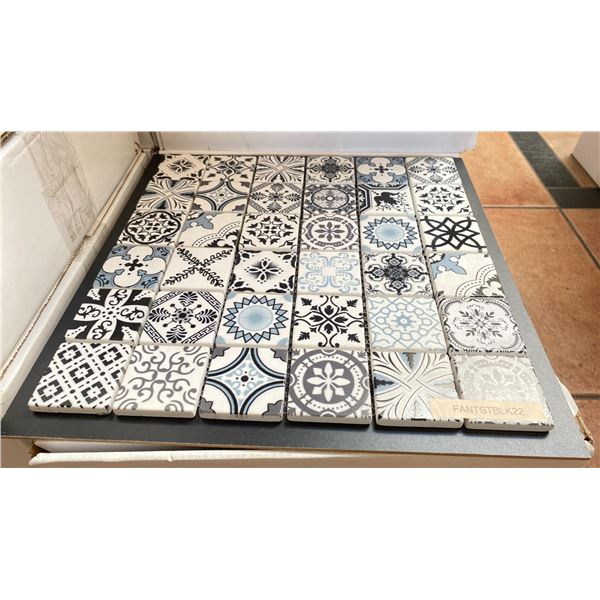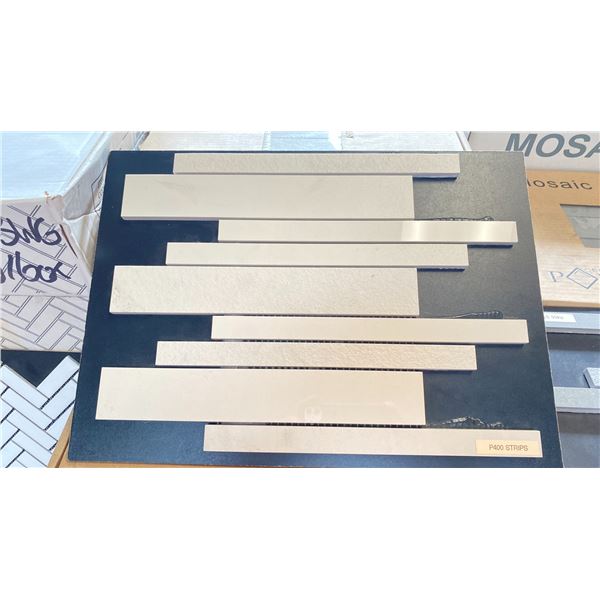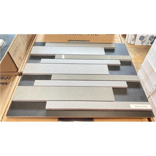 14 BOXES OF CERTIFIED PORCELAIN MOSAIC TILE IN P405 STRIPS 11 X 1SQ.FT. SHEETS PER BOX APPROX 154 SQ.FT. TOTAL