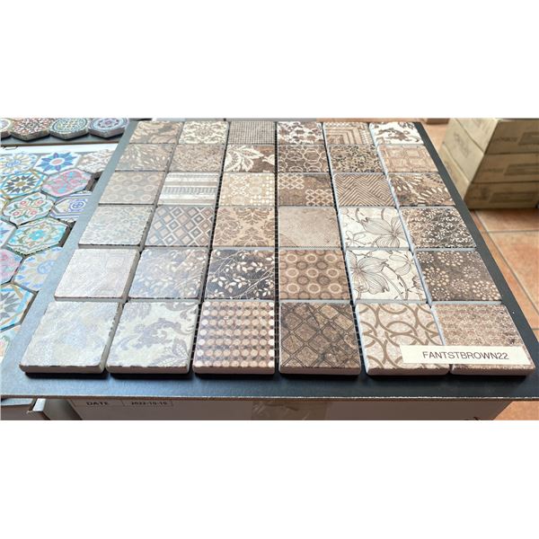 8 BOXES OF MARBLE MOSAIC TILE IN FANTSTBROWN22 11 X 1SQ.FT. SHEETS PER BOX APPROX 88SQ.FT. TOTAL