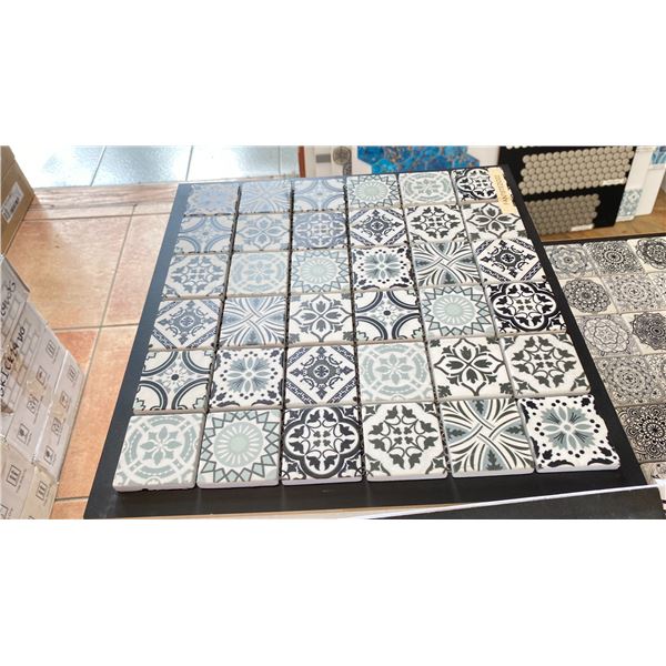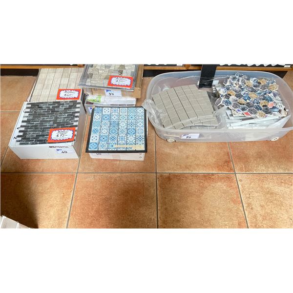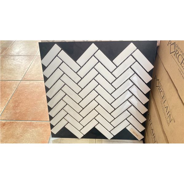 LARGE LOT OF ASSORTED MOSAIC TILE; 9 BOXES (APPROX 180SQ.FT. TOTAL) OF PORCELAIN IN WHITE13G, 4 BOXES (APPROX 80SQ.FT. TOTAL) OF PORCELAIN IN WHITE 16