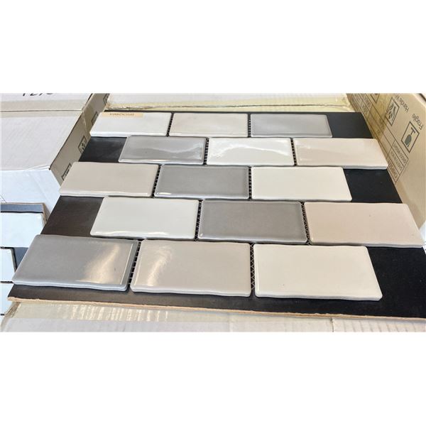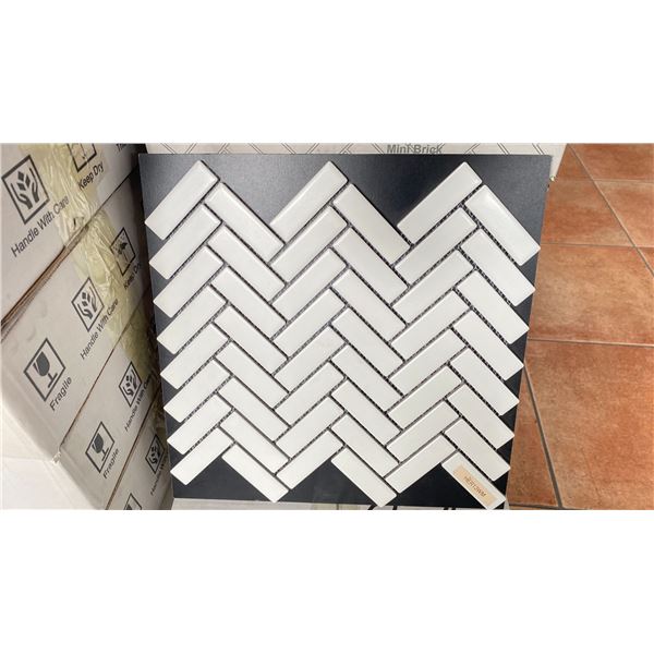 LARGE LOT OF ASSORTED MOSAIC TILE; 9 BOXES (APPROX 180SQ.FT. TOTAL) OF PORCELAIN IN WHITE13G, 4