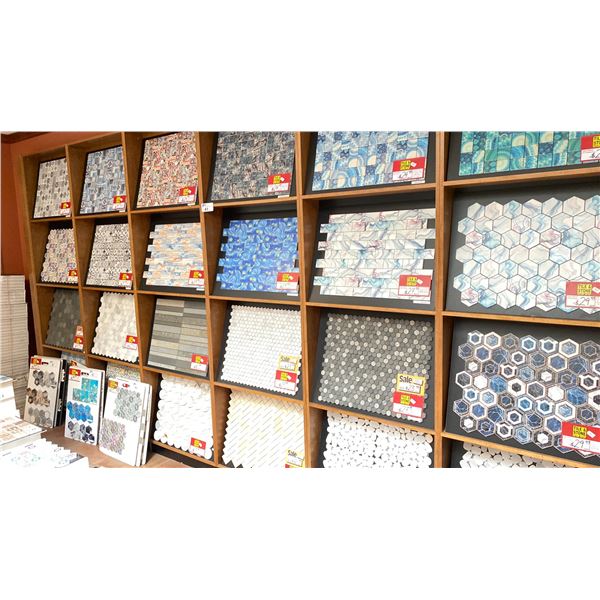 LARGE VOLUME OF MOSAIC TILE DISPLAYS; ENTIRE WALL, STANDING DISPLAYS AND SINGULAR DISPLAYS