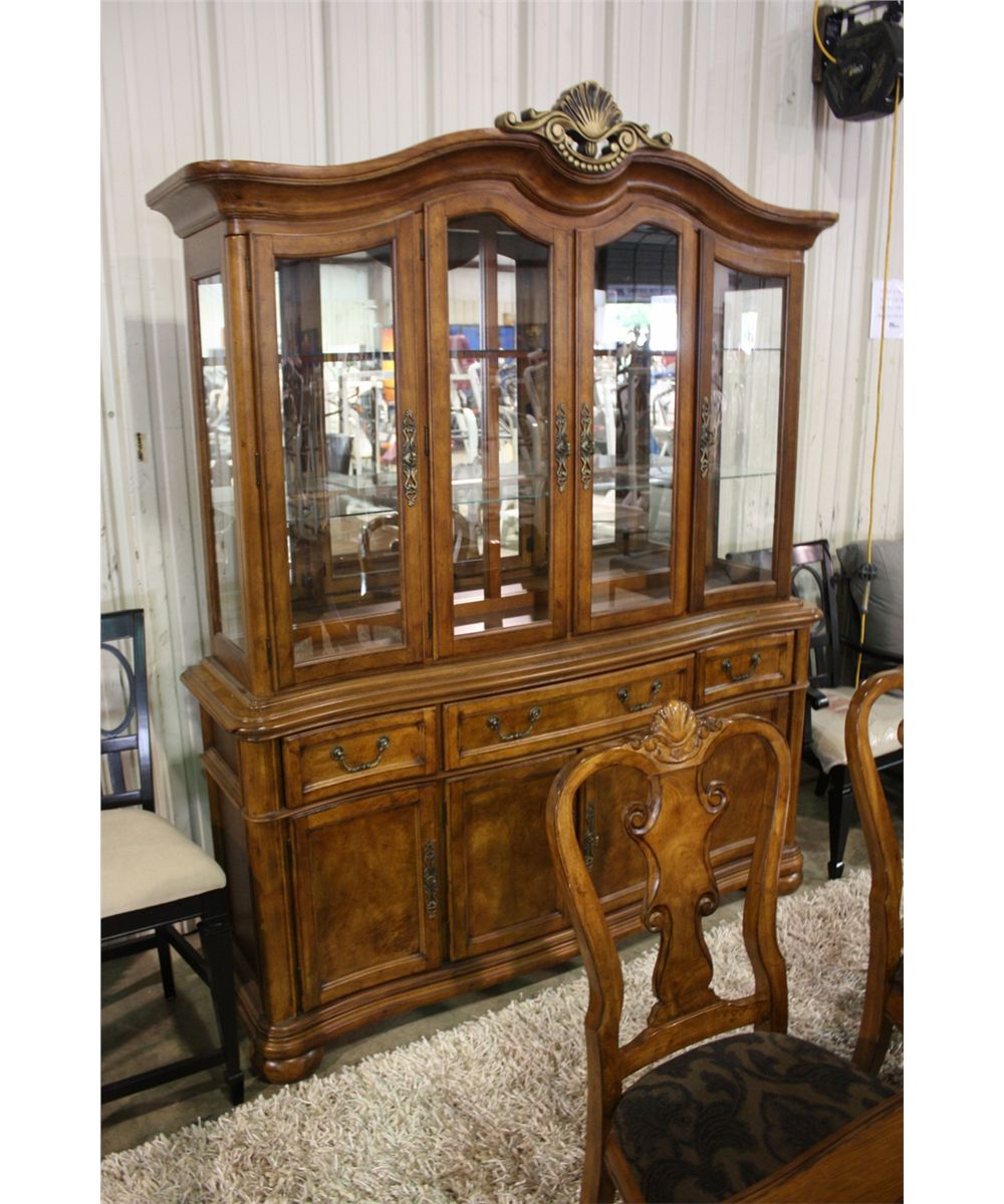 BURRELL WOOD TRADITIONAL 9 PIECE DINET SET INC: TABLE, 6 CHAIRS, 2 LEAFS , BUFFET AND HUTCH
