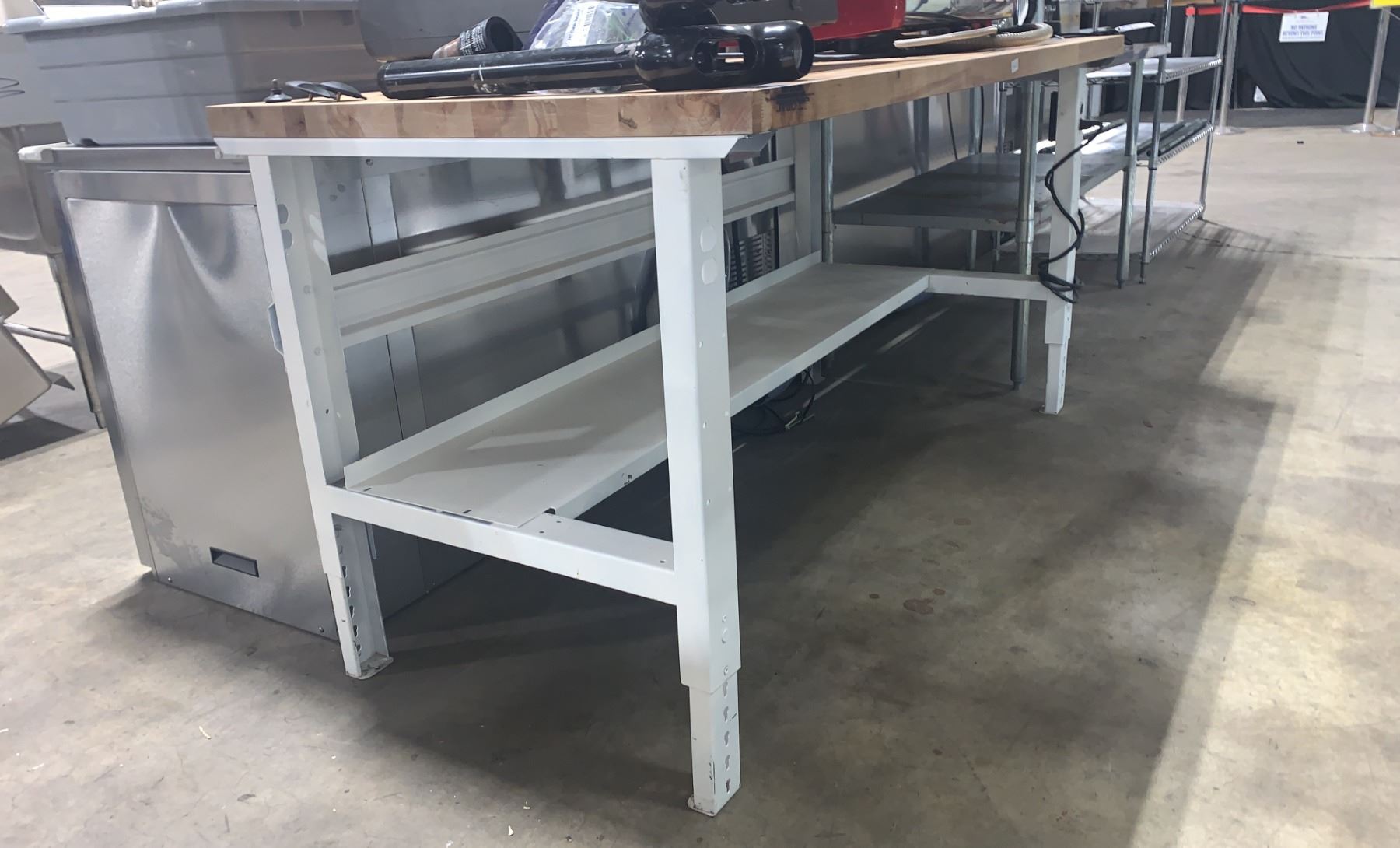 BUTCHER BLOCK TOP WITH METAL HEIGHT ADJUSTABLE LEGS PREPARATION TABLE - APPROX. 60"W X 30"D X 37"H