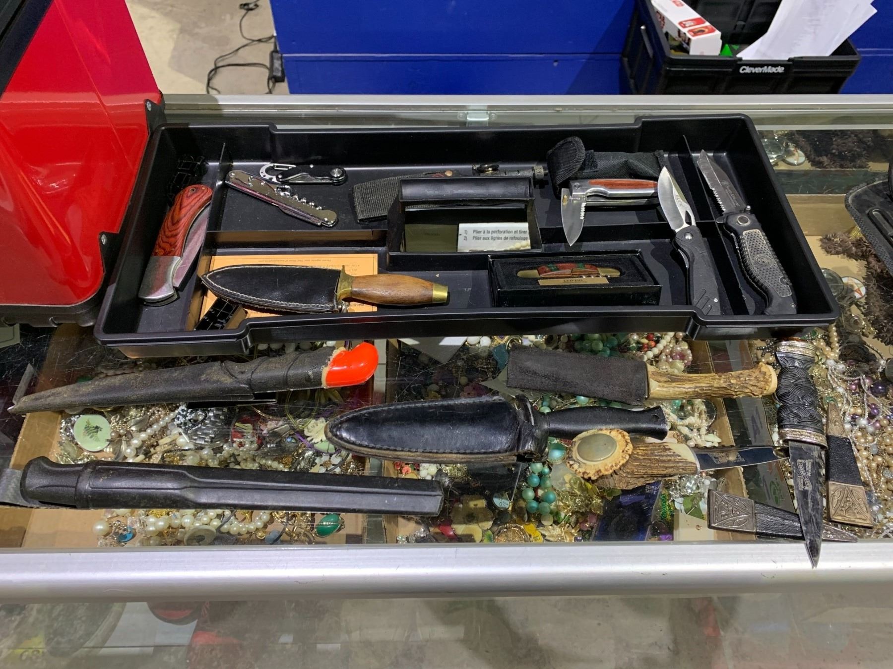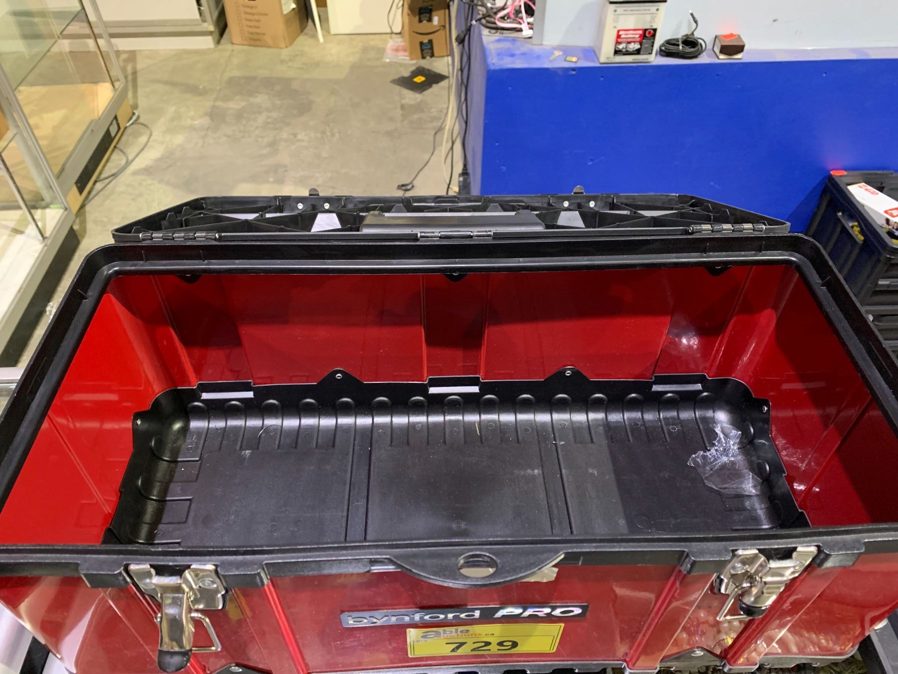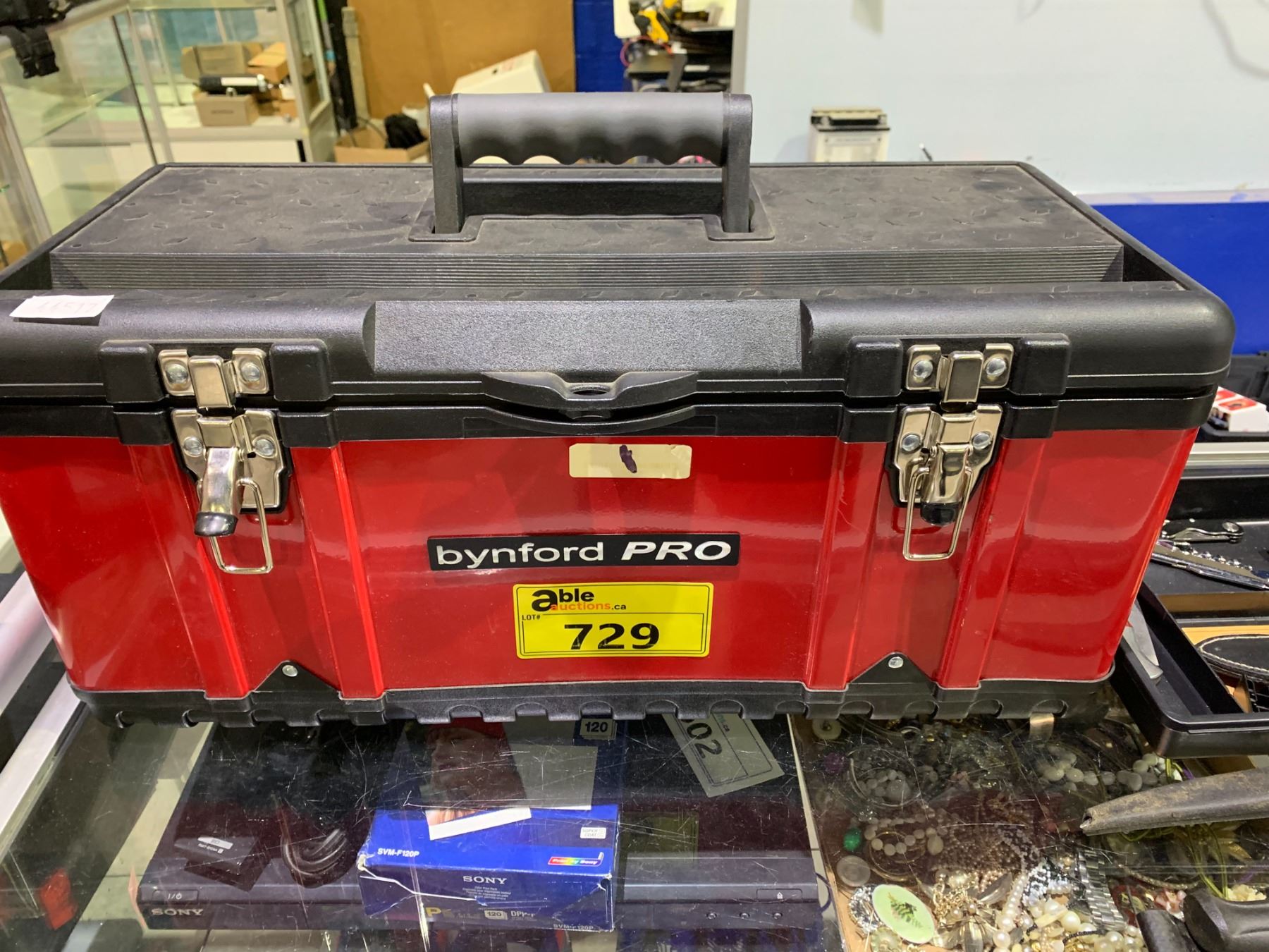 BYNFORD PRO TOOLBOX WITH ASSORTED KNIFE CONTENTS INCLUDING; NOWILL & SONS, SMITH & WESSON, BUCK & MORE