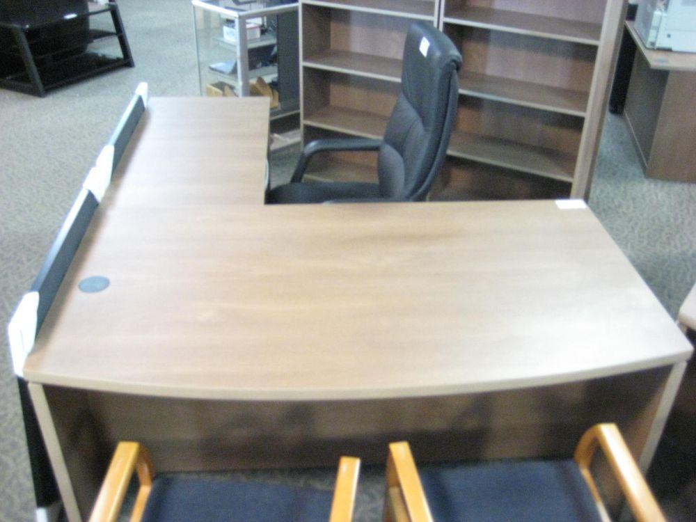 Birch Bow Front L-shape Executive Desk C/w File Pedestal