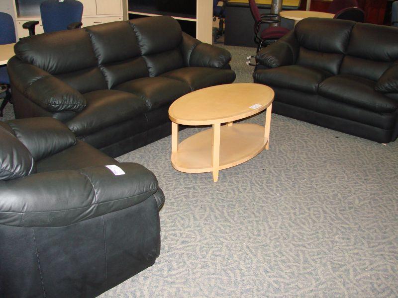 Black Leather 3 Pc Sofa Set