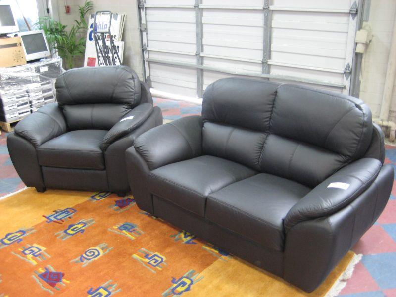 Black Leather 3 Piece Sofa Set
