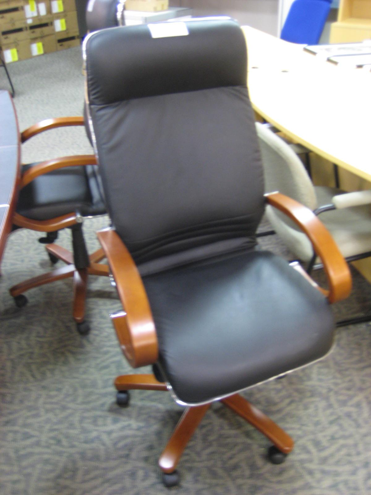 Black Leather High Back Chair W/cherry Arms