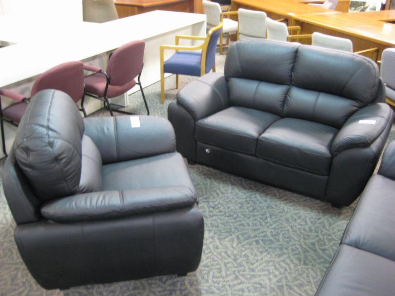 Black Leather Sofa Set Inc. Sofa, Love Seat And Chair