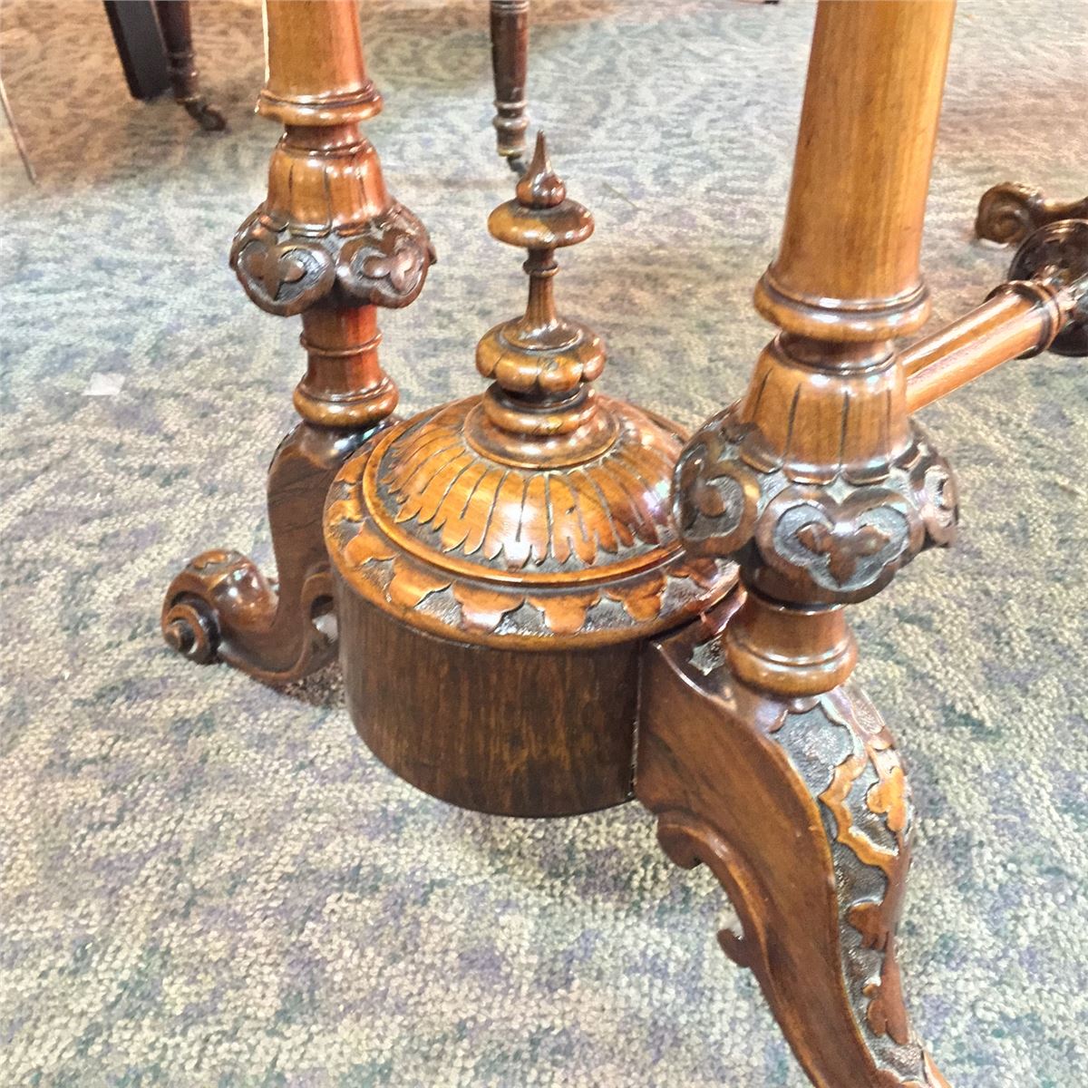 C. 1850 ROSEWOOD HALL TABLE, WITH ORIGINAL TURNED FINALS THAT ARE INTACT 48" W X 29" D X 26" H