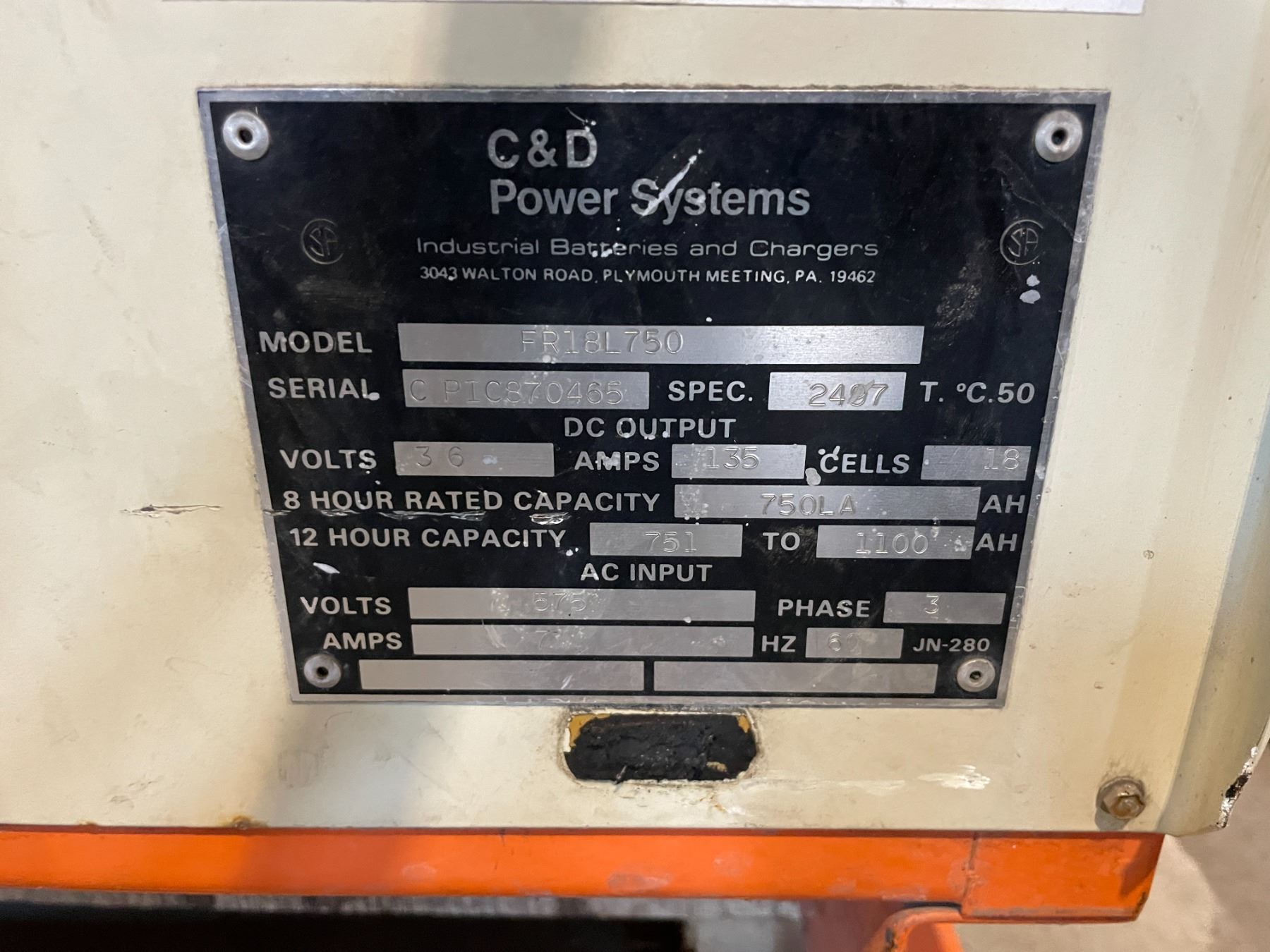 C&D POWER SYSTEMS FERRO FIVE FR18L750 36V - 135 AMP COMMERCIAL INDUSTRIAL ELECTRIC FORKLIFT CHARGER