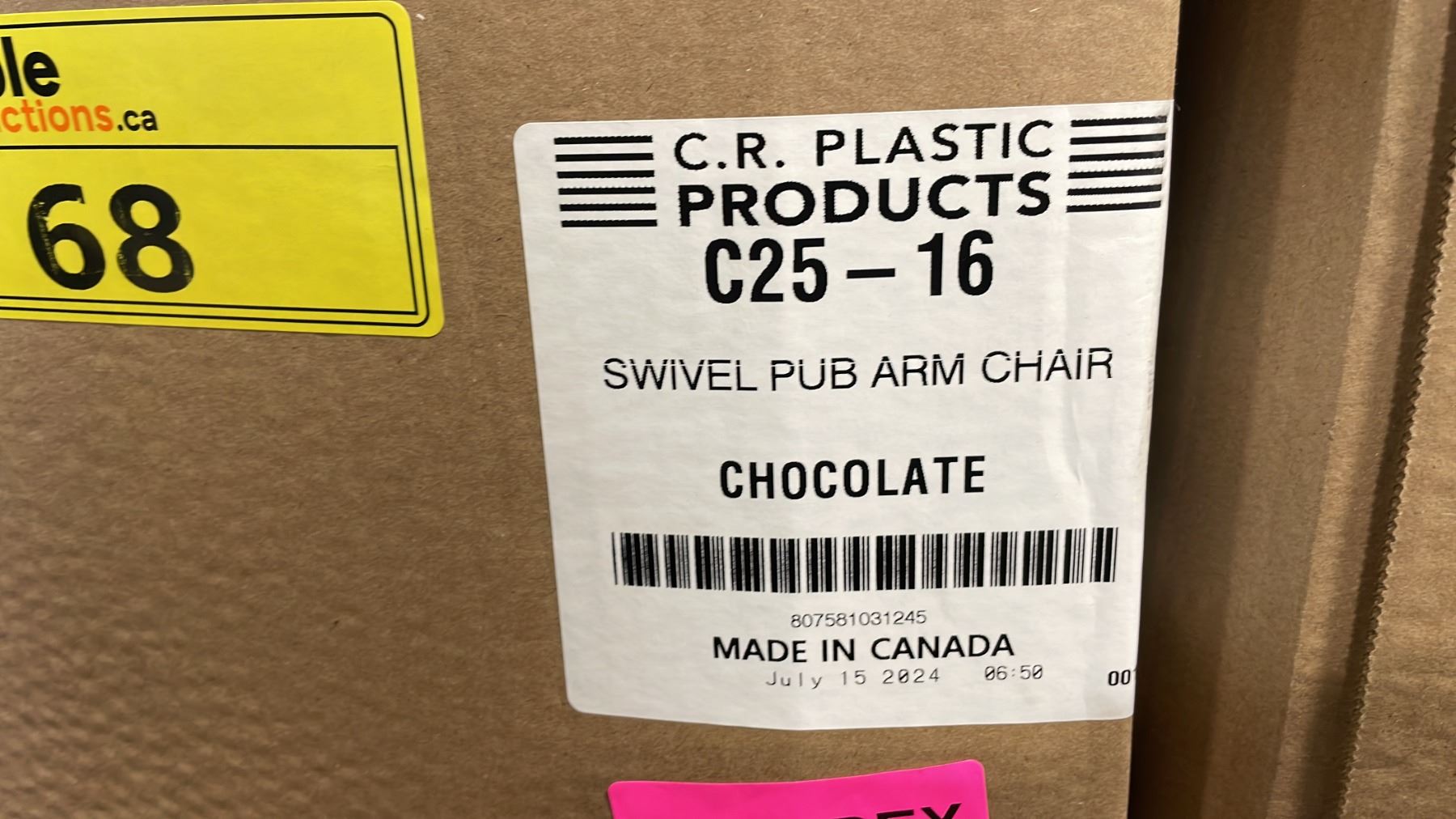 C.R. PLASTIC PRODUCTS MODEL C25-16. SWIVEL PUB STYLE OUTDOOR PATIO ARM CHAIR COLOR CHOCOLATE *IN BOX*