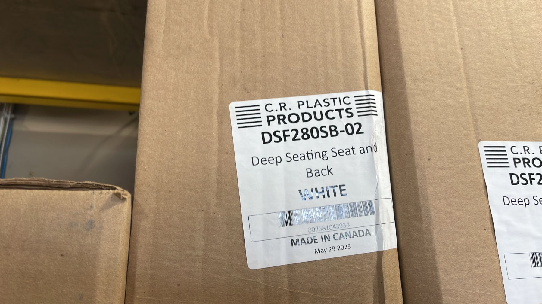 C.R. PLASTIC PRODUCTS MODEL DSF280SB-02. DEEP SEAT & BACK OUTDOOR PATIO CHAIR COLOR WHITE *IN BOX*
