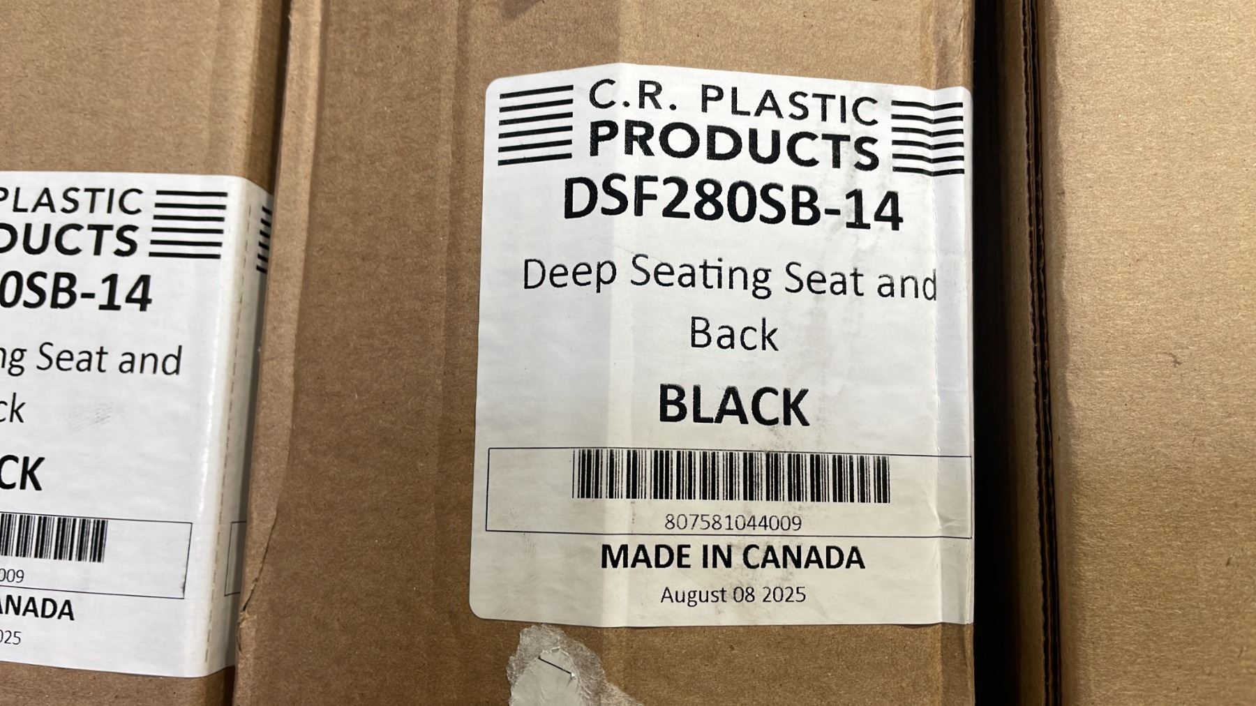 C.R. PLASTIC PRODUCTS MODEL DSF280SB-14. DEEP SEAT & BACK OUTDOOR PATIO CHAIR COLOR BLACK *IN BOX*